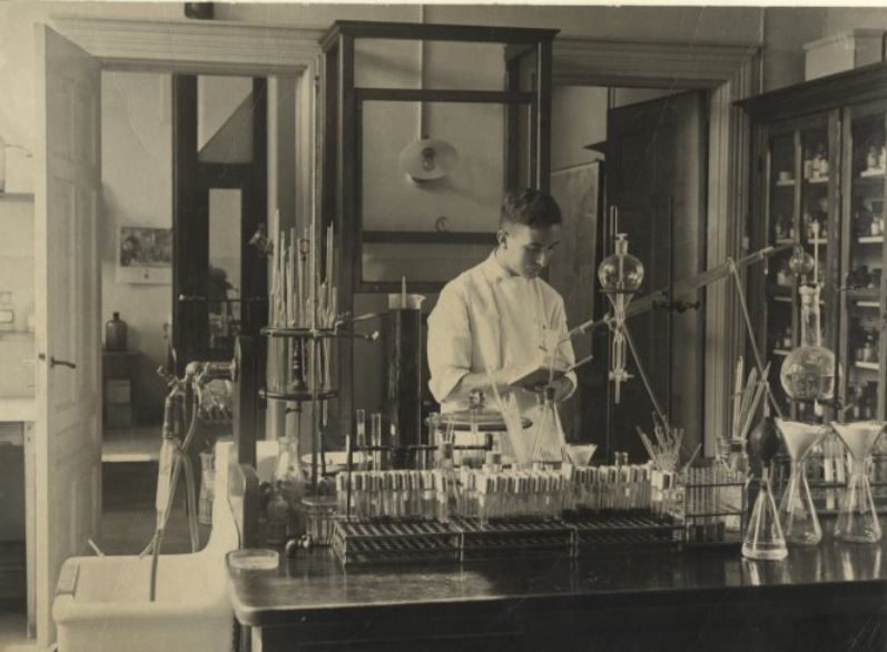 Hoekpand gebouwd in neorenaissancestijl als gemeentelijk laboratorium anno 1910. Het gebouw heeft een sousterrain en twee bouwlagen onder een schilddak met een gebogen hellingsvlak boven de goot. Rijk gebruik van natuursteen: o.a. voor de frontons, guirlandes, deuromlijstingen, wapen van Den Haag. Goed voorbeeld van overheidsarchitectuur uit het begin van de 20ste eeuw in een representatieve rijk gedetailleerde neo-stijl.