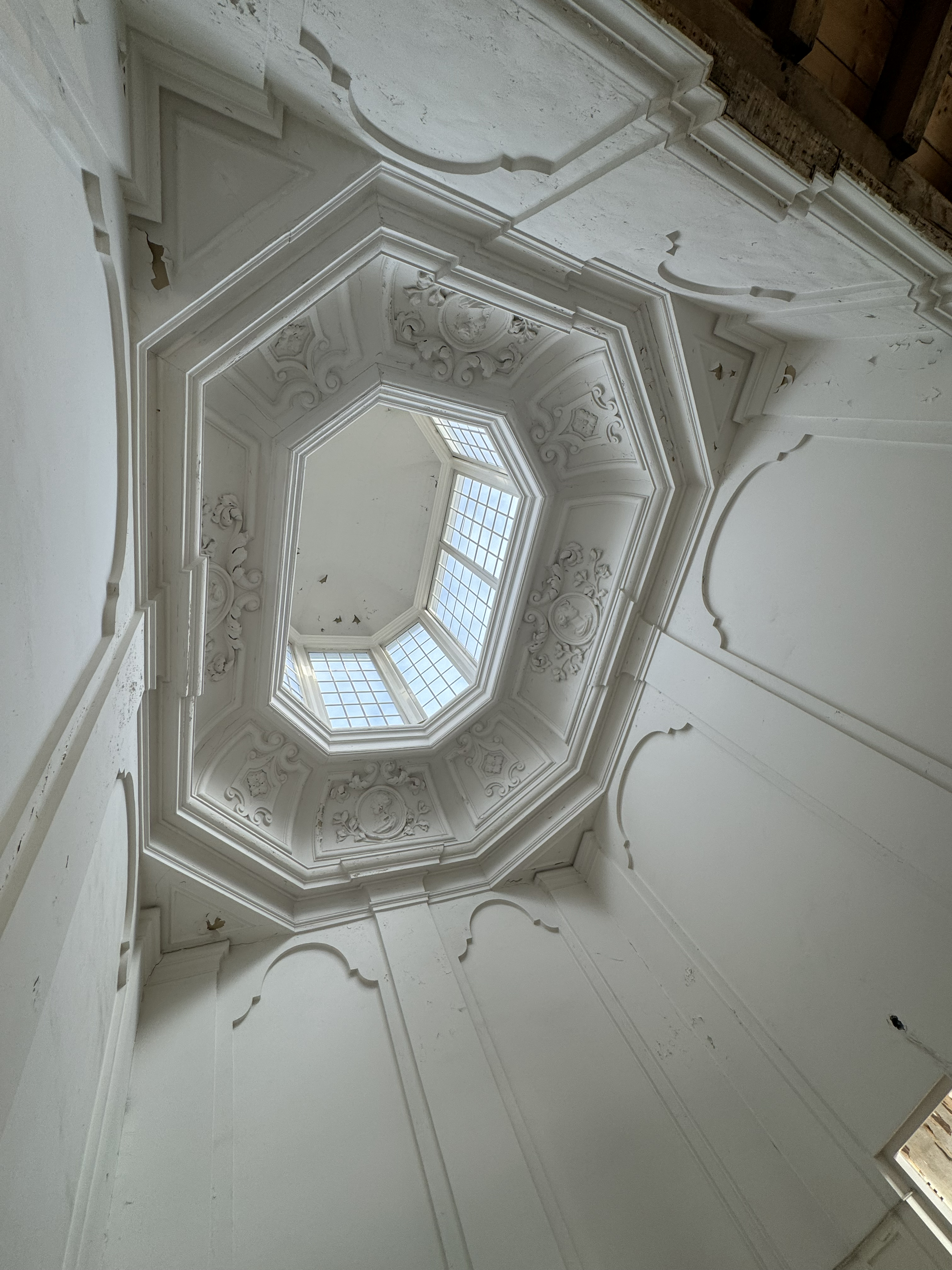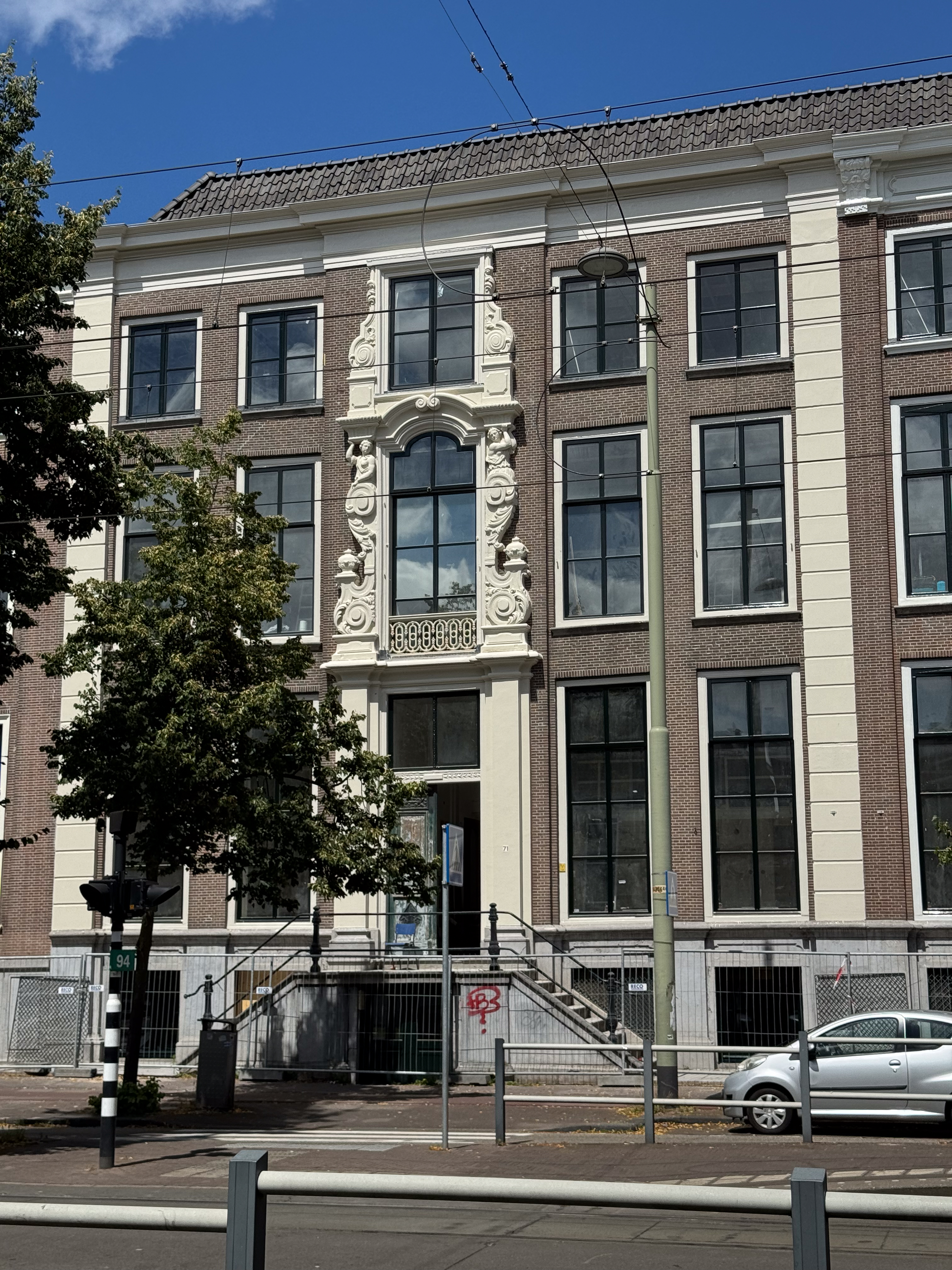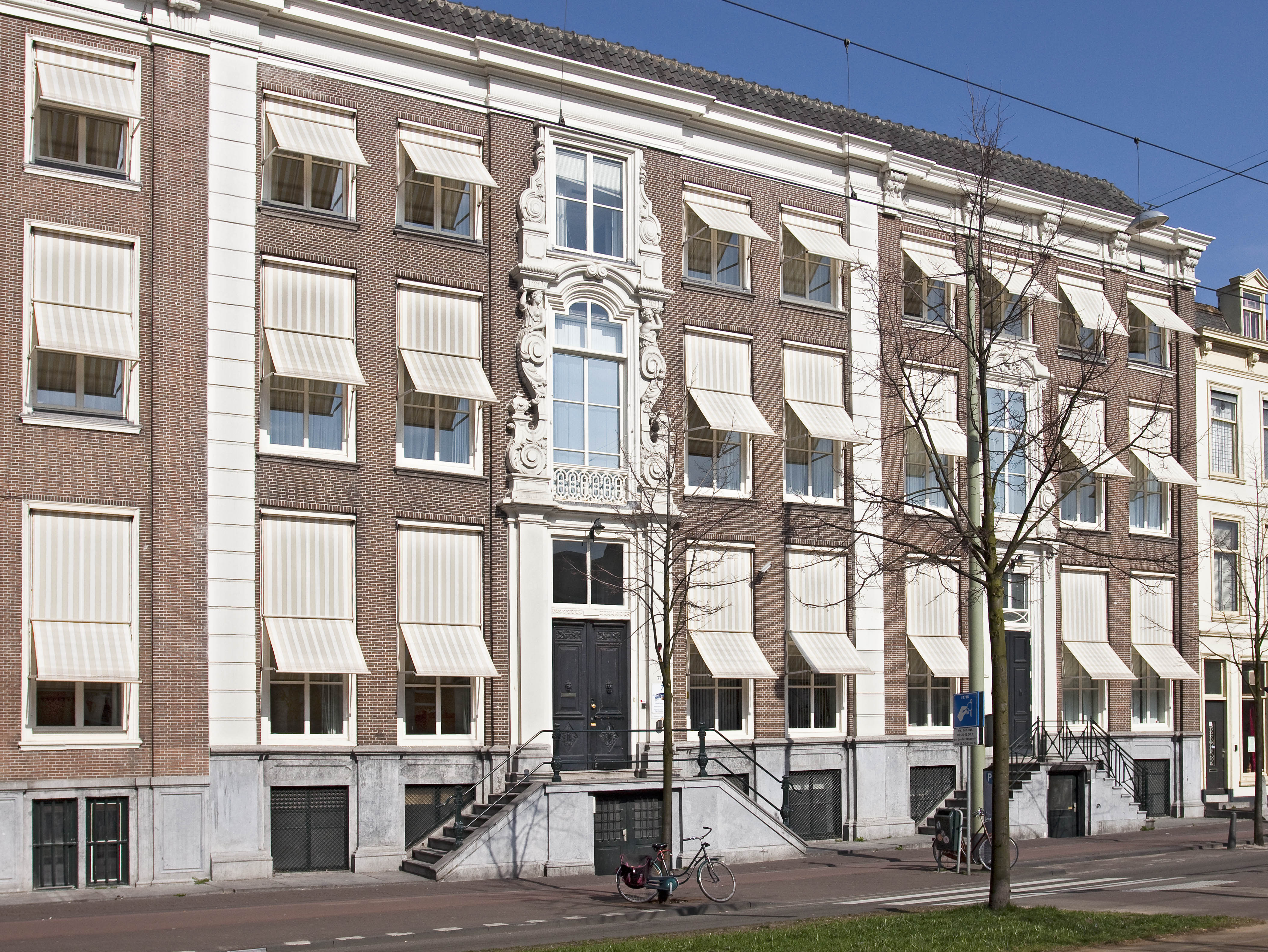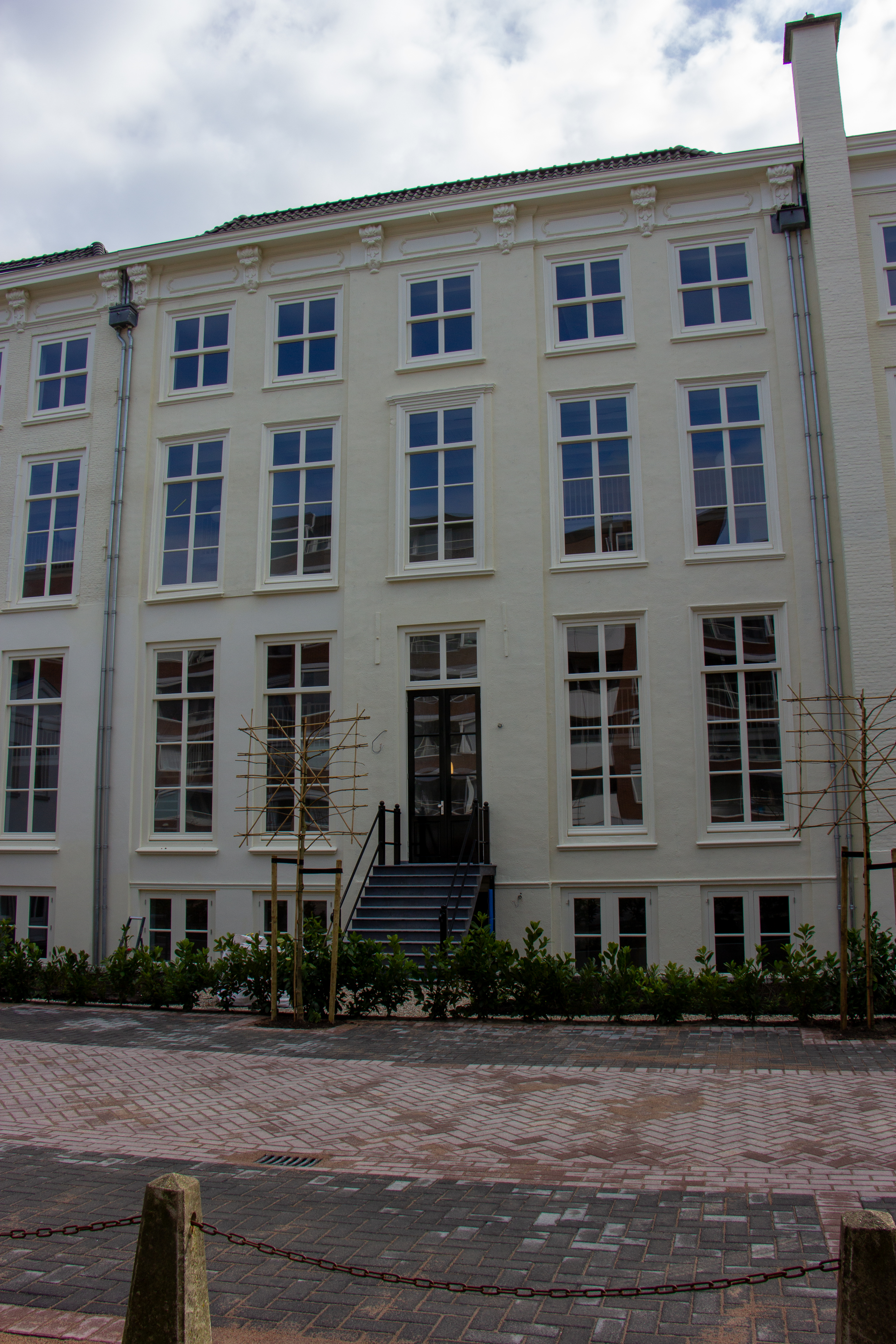Pand met Lodewijk XIV gevel met zeer rijk versierde middenrisaliet op hardstenen plint, hardstenen stoep, belangrijke interieurs in Lodewijk XIV en Lodewijk XVI stijl.