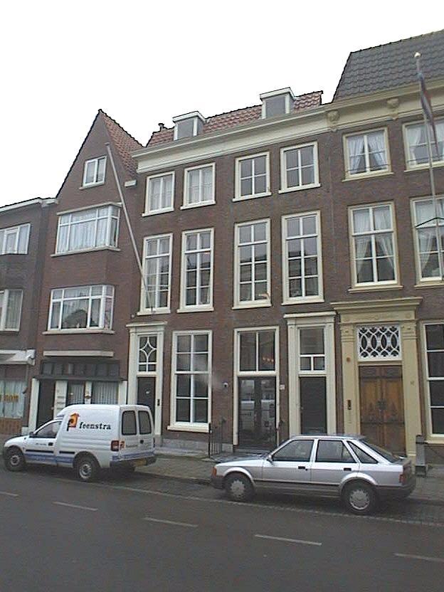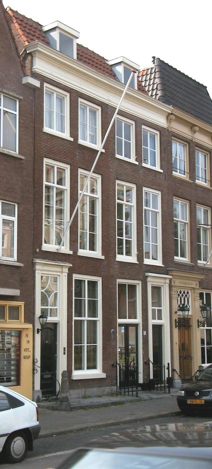 Pand met 18e eeuwse gevel met deuromlijsting en rechte kroonlijst.