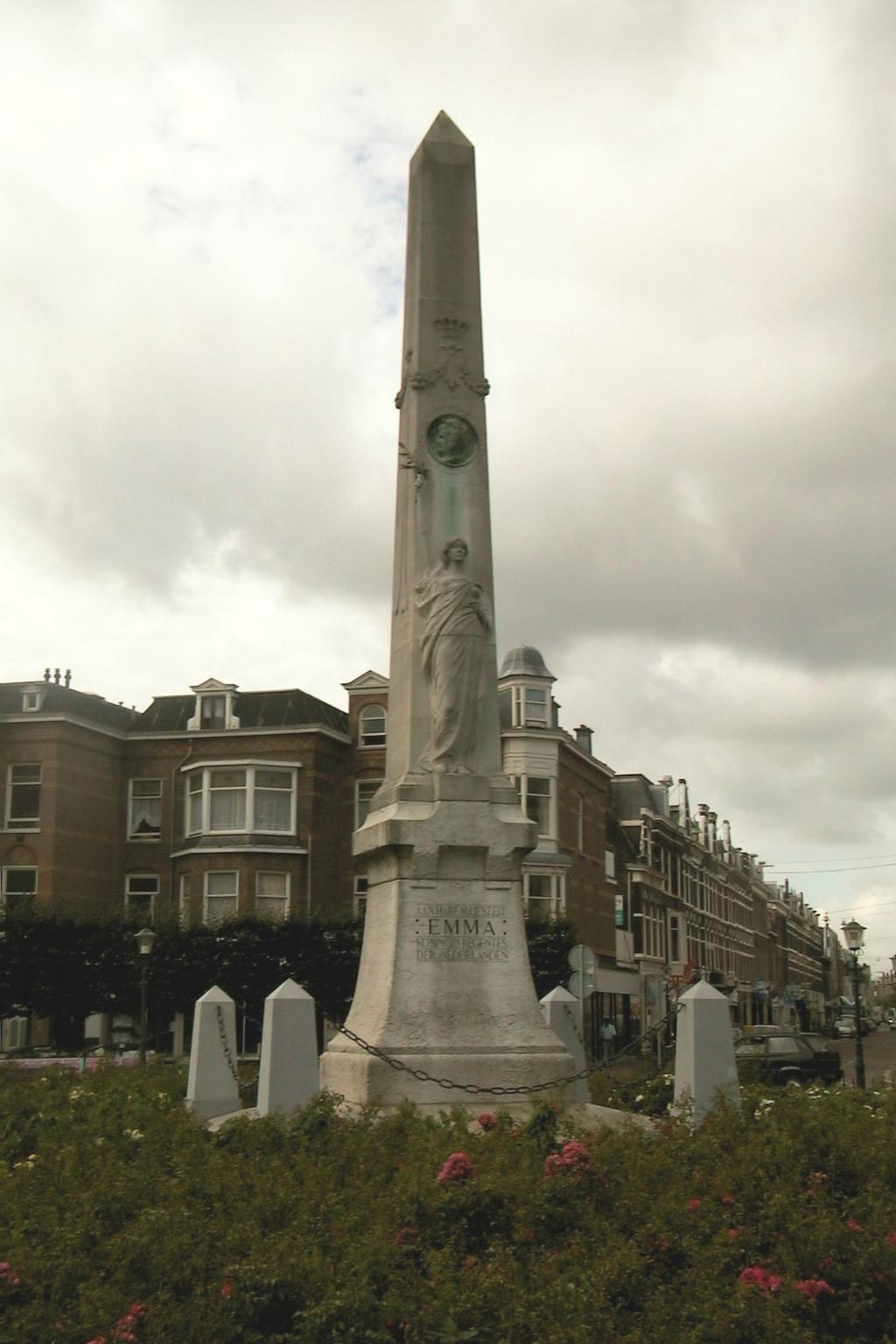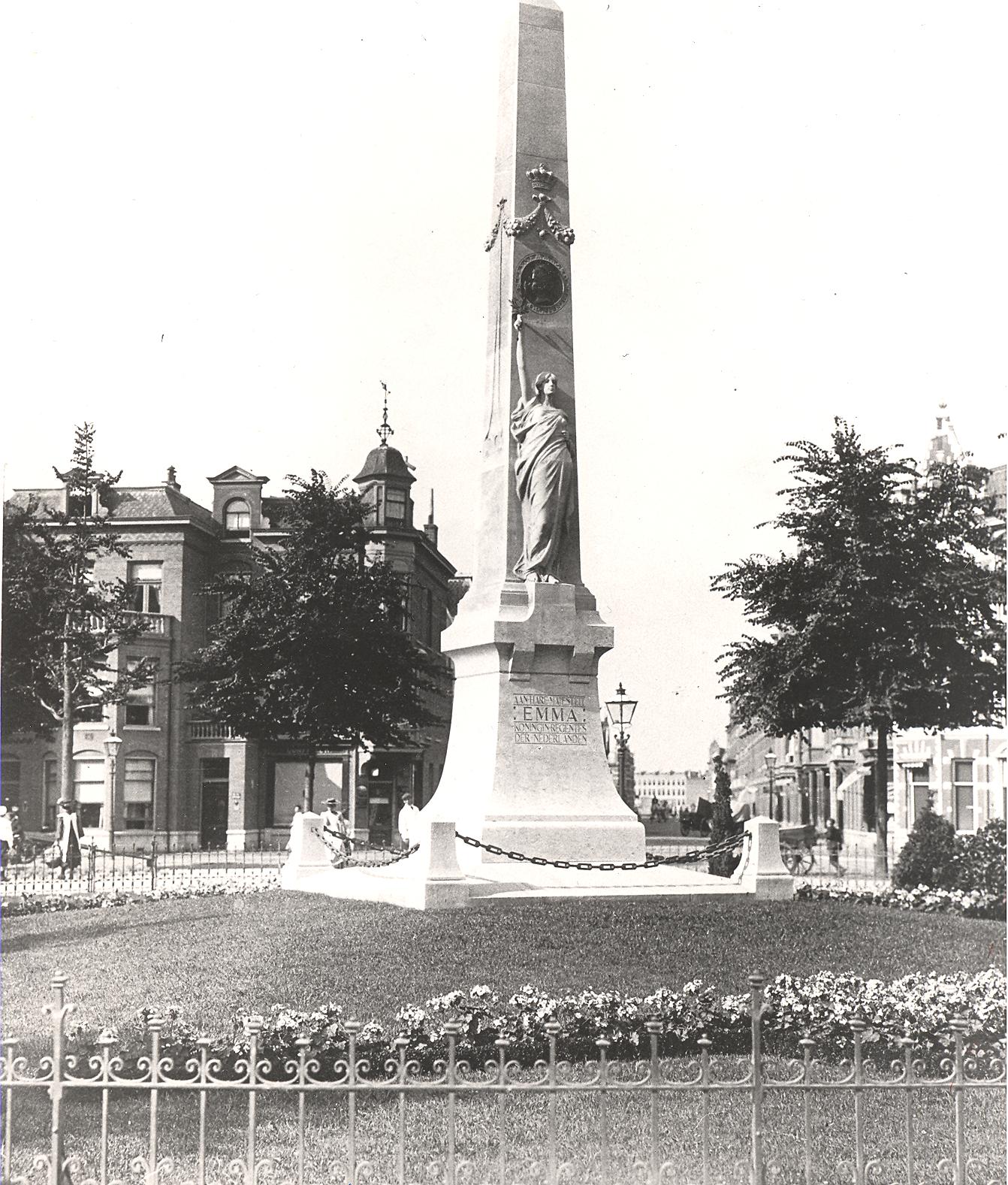 De obelisk is onthuld op 23 september 1905 ter ere van de koningin-moeder Emma die van 1890-1898 als regentes optrad voor haar dochter Wilhelmina. De op een uitzwenkende voet geplaatste obelisk is vervaardigd van graniet en zandsteen door A.W.M. Ode en A.F. Gips. Zij is versierd met gebeeldhouwde festoenen met linten en bezit aan de voorzijde een portretbuste en profil in brons, voorstellend koningin Emma, en een gebeeldhouwd allegorisch vrouwenbeeld.