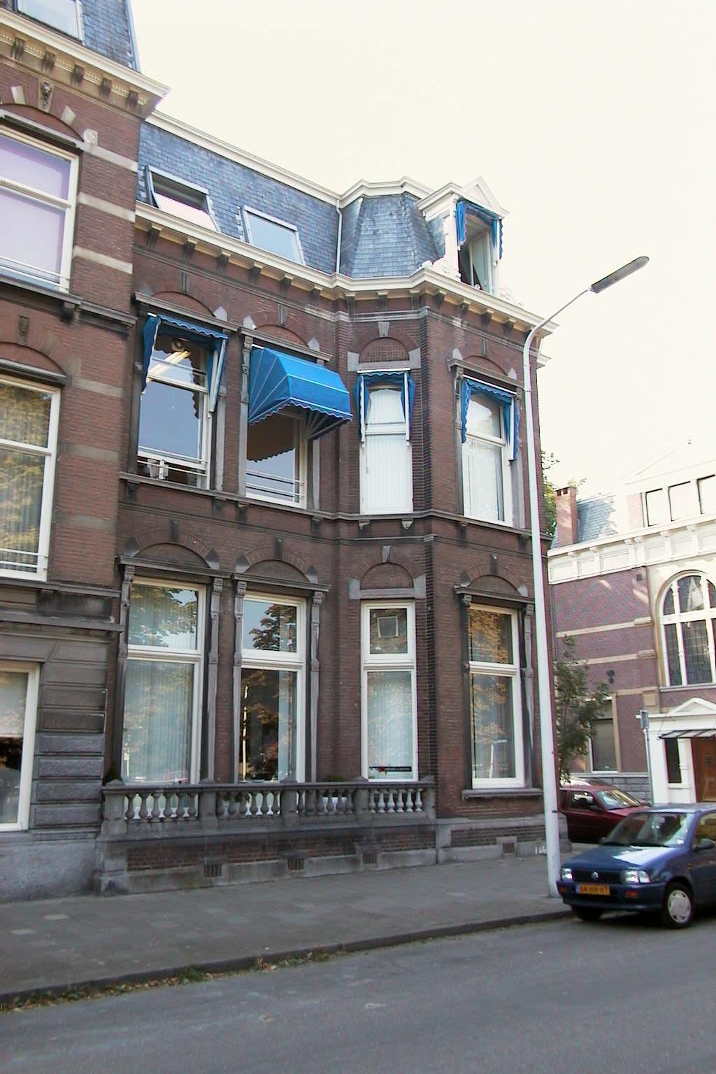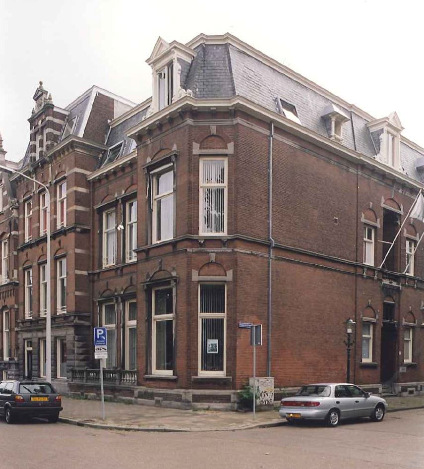 Pand met neorenaissancegevel, 1894-1895. Architect: E.P. Ehnle gebosseerde hardstenen onderverdieping, vensters met vensterbanken op consoles en ontlastingsbogen met blokken en maskersluitstenen. Kroonlijst op zandstenen consoles, doorbroken door een stenen dakkapel, bekroond door een opzetstuk met fronton en obelisken.