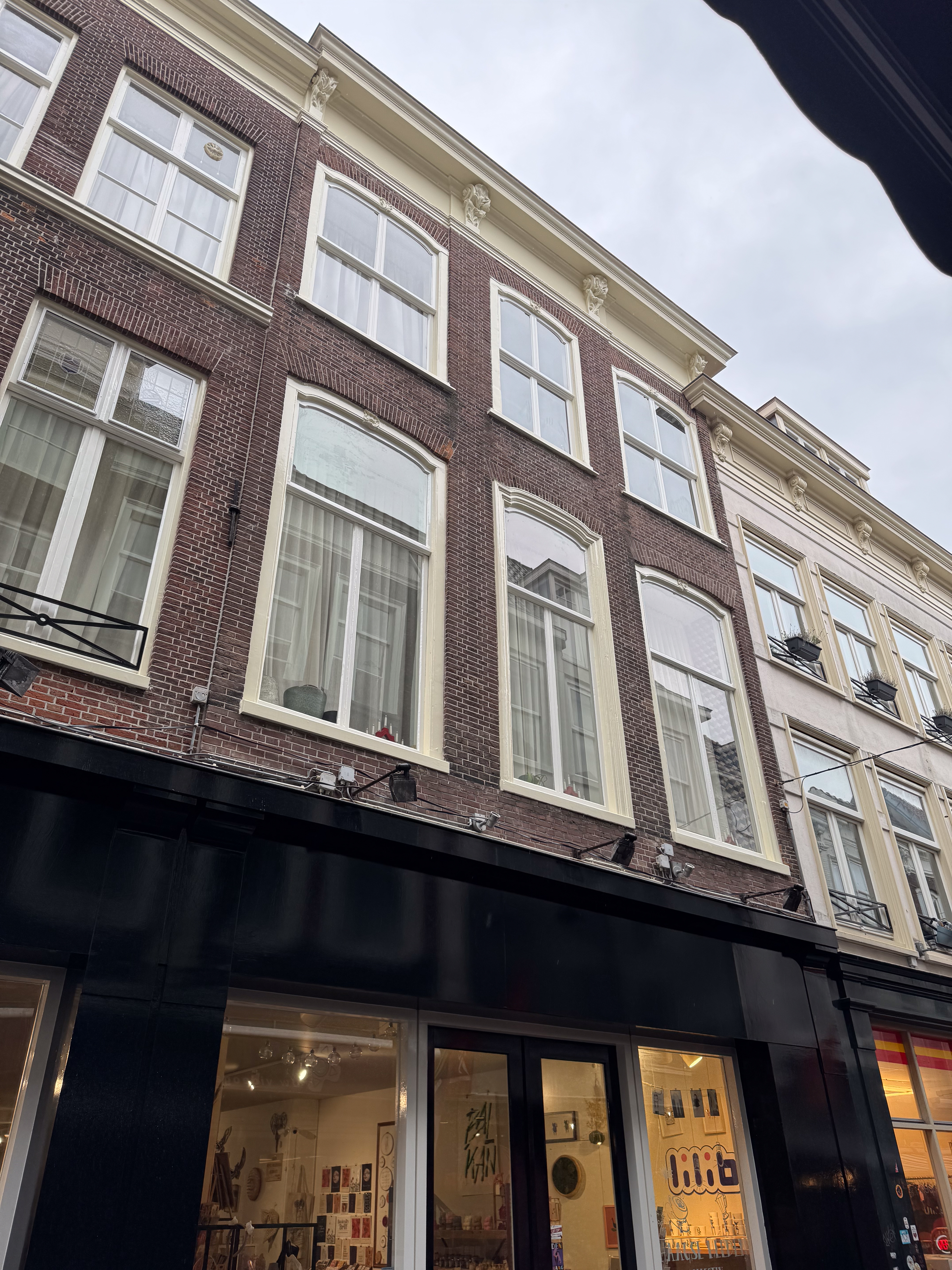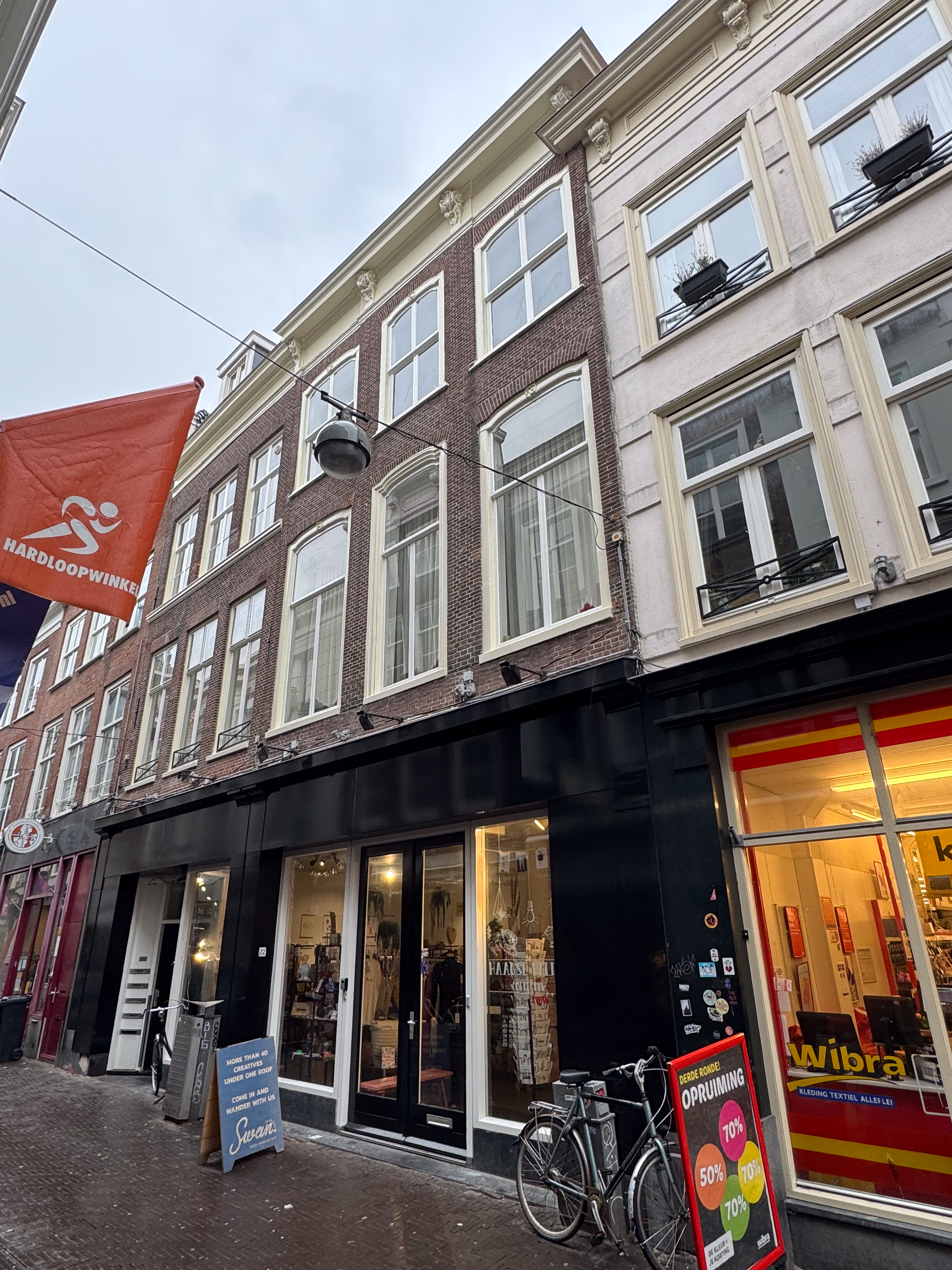 Pand bestaande uit parterre en twee verdiepingen. Lijstgevel ter breedte van drie vensterassen uit het derde kwart van de 18de eeuw. Zeer storende terugliggende winkelpui met nr. 20. Kozijnen getoogd en geprofileerd en voorzien van schelpornament; de onder strek liggende vensters (rechter strek op le verdieping vernieuwd) bevatten l9de eeuwse T-schuif-ramen op de le verdieping en vierruitsschuiframen op de 2e verdieping.