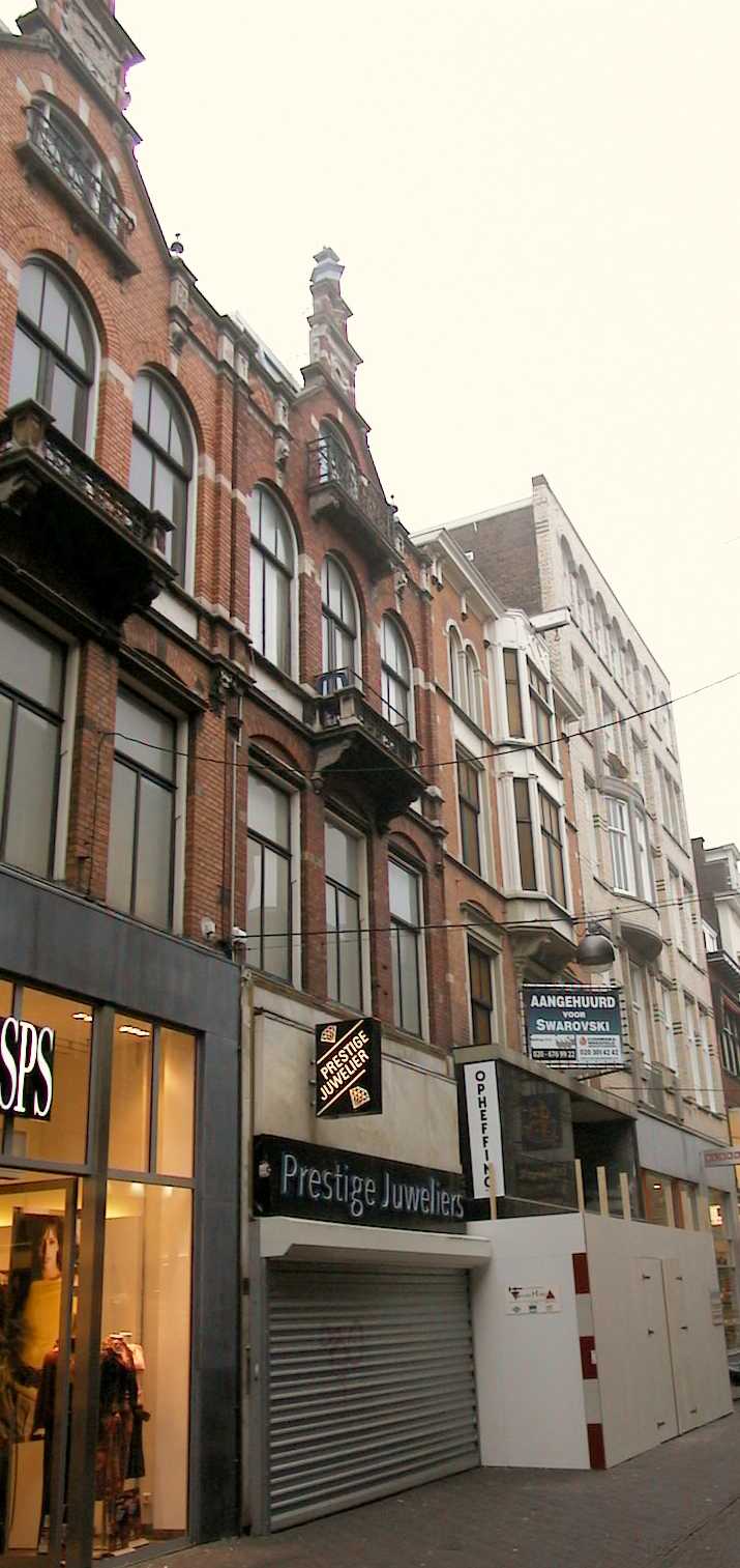 Twee winkel-woonhuizen in rijke neo-renaissance uit 1892, ontworpen als dubbelpand door de architecten Karel Meijer en H.E.M. Rademaker. Het dubbelpand bestaat uit drie bouwlagen onder twee mansardekappen.