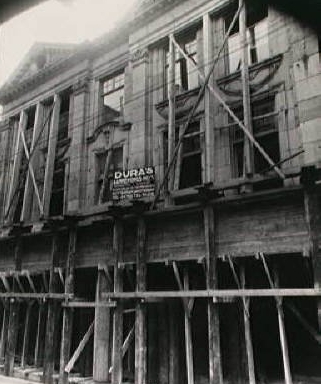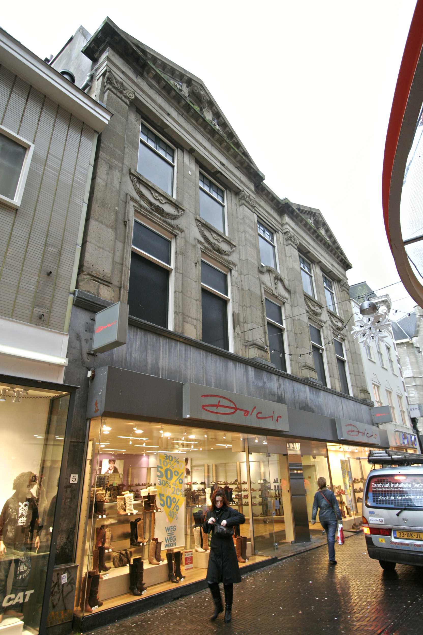 "Um Achtzehnhundert Bewegung" die met name in de jaren vlak voor het uitbreken van de Eerste Wereldoorlog populair was. Klassieke details zoals het gebruik van tympanen, pilasters en guirlandes zijn ook in dit ontwerp terug te vinden. In de Haagse historische winkelstraten is deze stijl vrijwel niet vertegenwoordigd. De begane grond van de gevel in de Spuistraat bezit een vrij recente ingebrachte winkelpui; de winkelpui in de Wagenstraat heeft nog de oorspronkelijke indeling maar is wel vernieuwd.