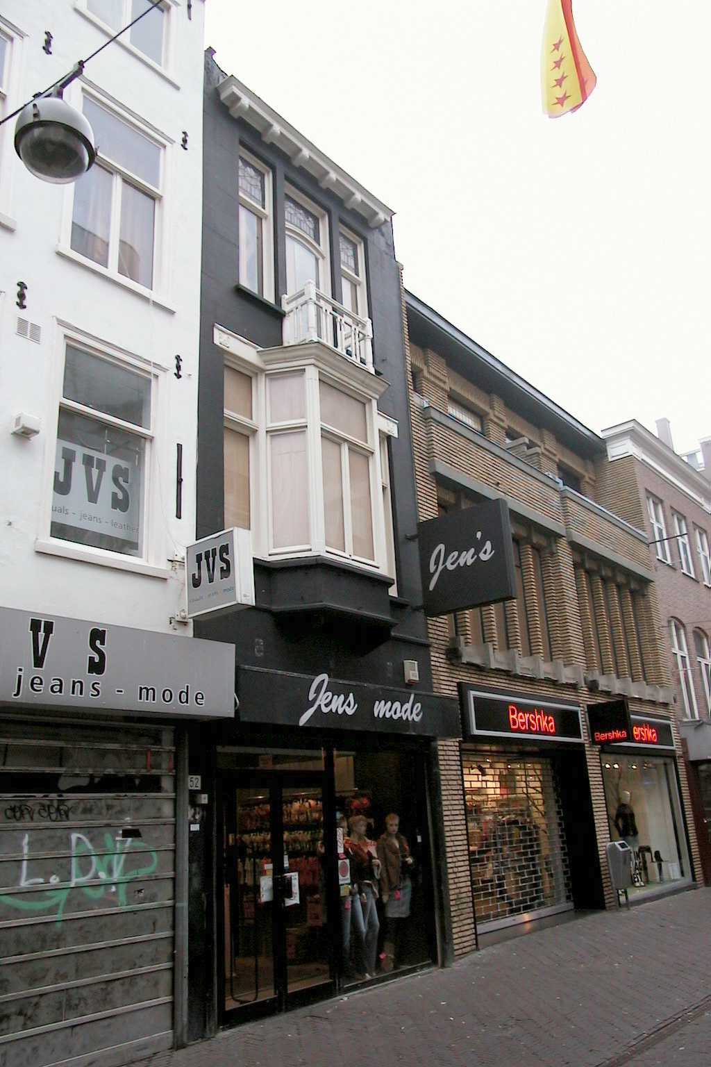 De voorgevel in overgangsarchitectuur heeft opvallend brede raampartijen op de verdiepingen, waarvan die van de eerste verdieping is voorzien van een houten erker. De gevel wordt beëindigd met een in overstek uitgevoerde kroonlijst. Het metselwerk van de gevel is later in een donkere kleur gesausd. De begane grond bezit een vrij recente winkelpui. In 2008 heeft nieuwbouw plaatsgevonden met behoud van de voorgevel.