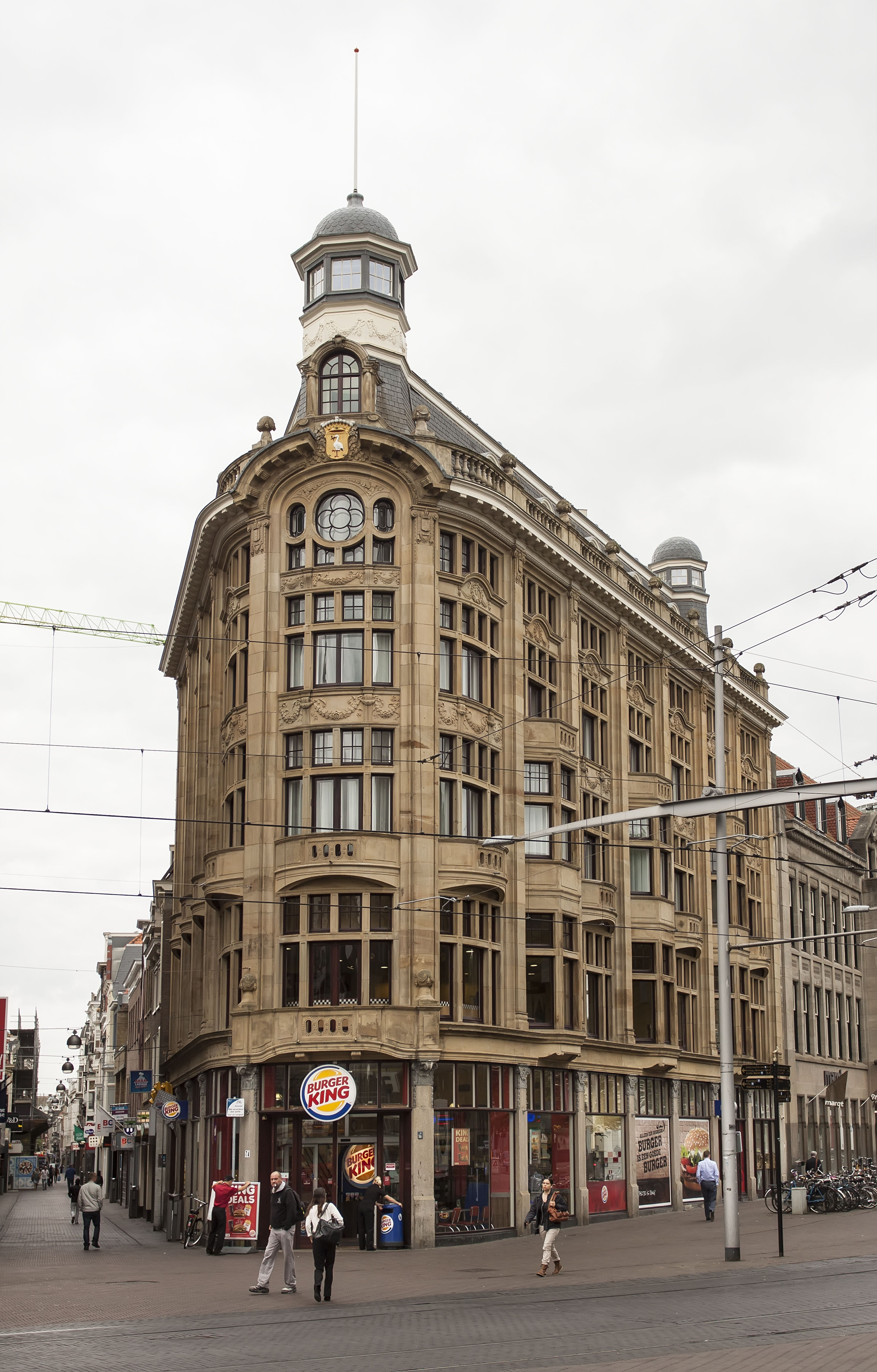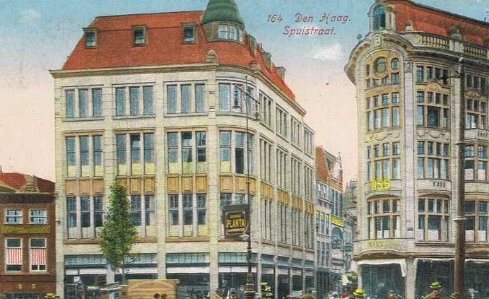 Voormalig modemagazijn uit 1909 op de hoek van de Spuistraat-Hofweg in de historiserende stijl van de "Um Achtzehnhundert Beweging", gebouwd voor de firma B.J. Voss & Zonen naar ontwerp van het architectenbureau J. Jacot en W. Oldewelt. In 1914 aan de zijde van de Hofweg door A. Jacot uitgebreid in dezelfde vormgeving.