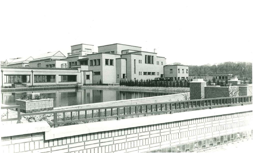 Stookhuis op complexe plattegrond, bestaande uit ten opzichte van elkaar verspringende bouwvolumes van een bouwlaag hoog, onder platte daken. Aan de achterzijde staan twee markante, hoge schoorsteentorens. Aan weerszijden zijn een inrijpoort en een elektriciteitshuisje gesitueerd. De draagconstructie is van gewapend beton, die bekleed is met gele baksteen. Aan het expressieve metselverband is af te lezen dat deze een bekledende en geen constructieve functie vervult. Deuren en vensters zijn van brons. De betonnen gootlijsten en bovenlateien zijn met koper bekleed. Eveneens van koper zijn de hemelwaterafvoeren. Waardering.