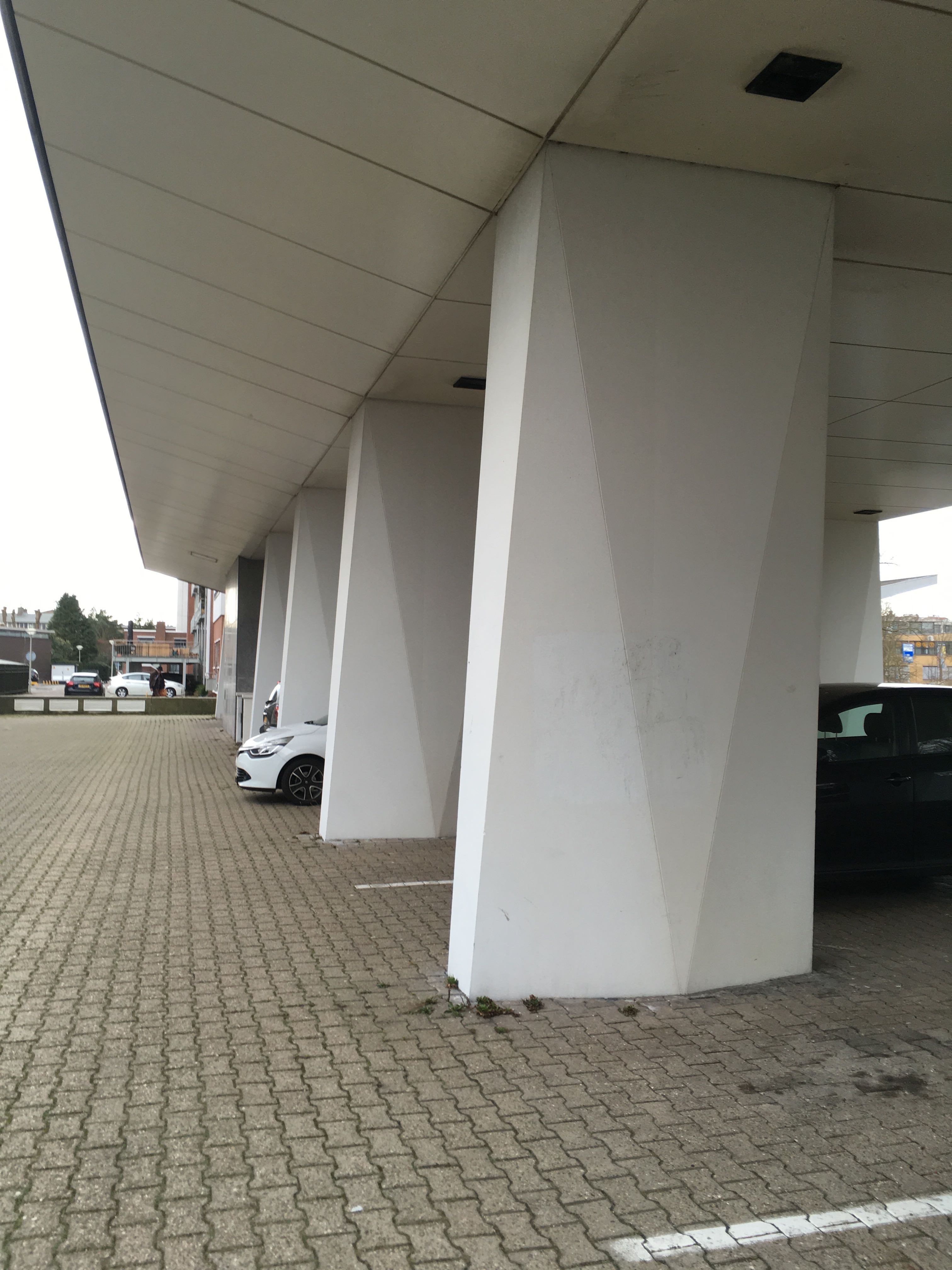 Het gebouw bestaat uit zes bouwlagen die op zware betonnen kolommen geplaatst zijn, waardoor de begane grond afgezien van een glazen entreeportaal volledig vrijgehouden is. De kolommen vormen een schraagachtige constructie die tezamen met de afgeschuinde uiteinden van de onderzijde van de verdiepingsvloer voor een bijzondere belijning zorgen.