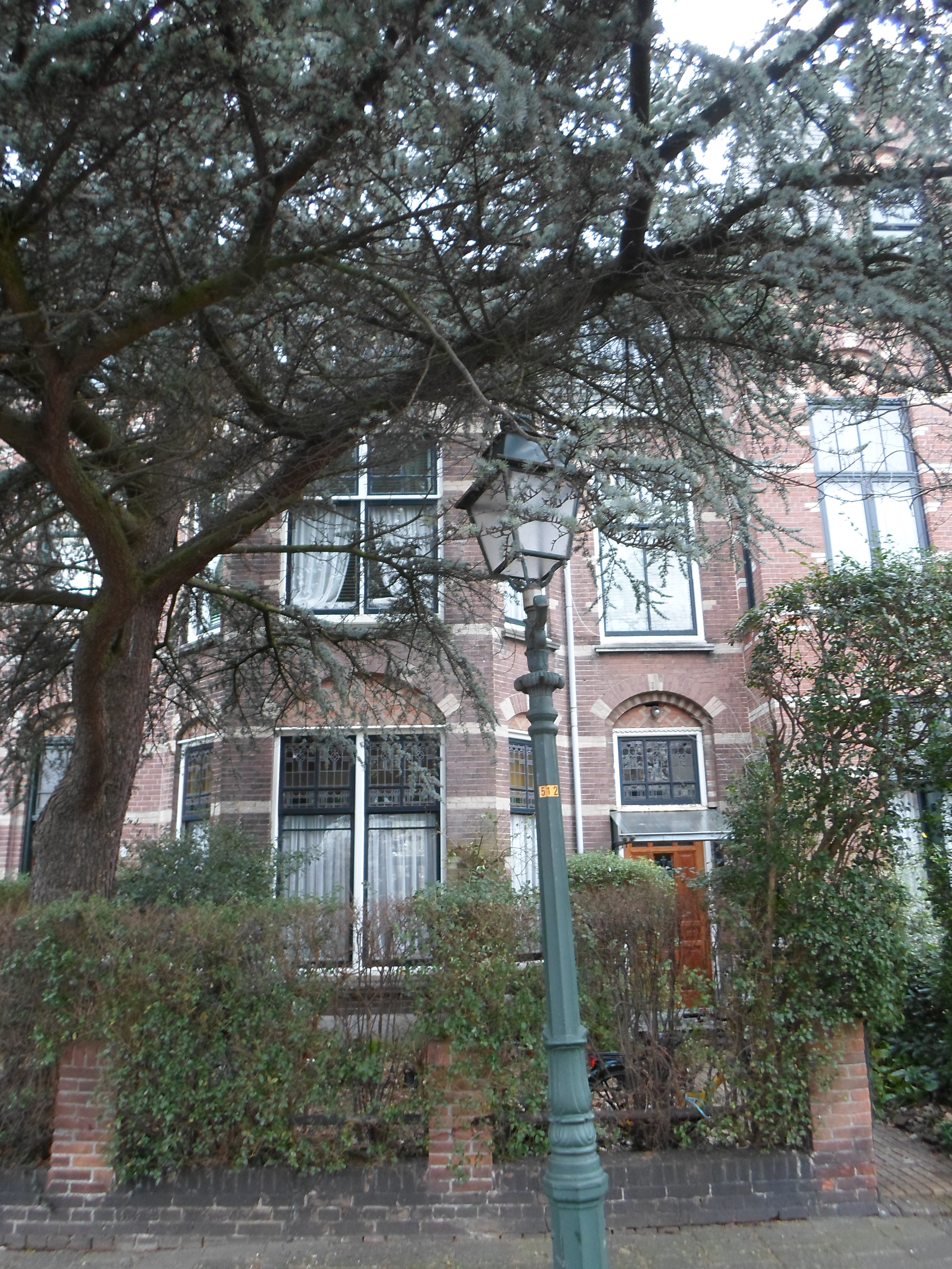 Herenhuis op rechthoekige plattegrond, bestaande uit begane grond en verdieping onder een afgeknot schilddak, drie assen breed. In de rode bakstenen gevel is ter accentuering van neggen, strekken, bogen en sierbanden witte kalksteen toegepast. Het linkerdeel van de gevel is als risaliet uitgebouwd en gedekt door een schilddak met pirons. Hierin is een dakkapel met trapgevel geplaatst. De vensters zijn voorzien van glas-in-lood bovenlichten en onderverdeeld in verticale roeden. De ingang is in een getoogd portiek gesitueerd, waarboven een balkon op natuurstenen consoles, afgesloten door een gemetseld boogvormig balkonhek. De voordeur bezit smeedijzeren panelen. De lage bakstenen muur die de scheiding vormt tussen straat en tuin is in later tijd vernieuwd. Waardering.