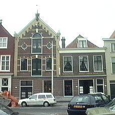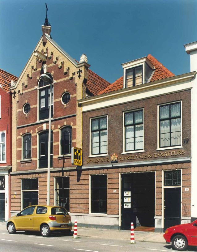 Bedrijfspand uit het derde kwart van de 19de eeuw. Puntgevel opgetrokken uit rode en gele baksteen met in baksteen gebosseerde onderpui, hardstenen plint en cordonlijsten, acroteria op de hoeken van de puntgevel en overhoeks toppilaster met bekronend siersmeedwerk en windwijzer. Hijsbalk. In de onderpui een venster met zesruitsschuifraam en een dubbele deur met panelen en siertraliewerk voor het bovenlicht.