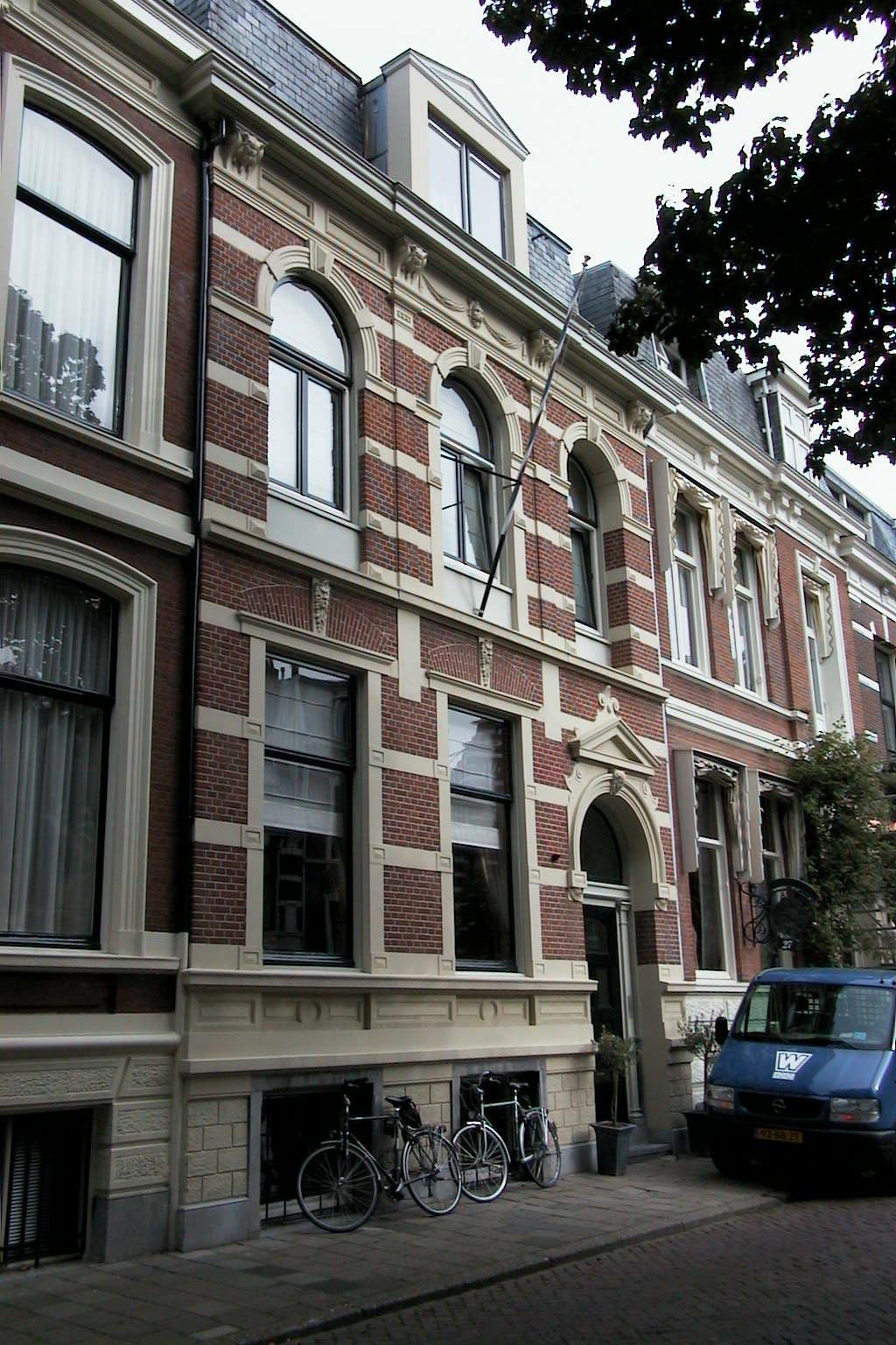 Pand uit 1889-1890, bestaande uit souterrain, belétage en één verdieping. Lijstgevel in neorenaissancetrant met in pleister gebosseerd souterrain, waterlijst en houten kroonlijst met panelen, leeuwenmaskers en festoenen, alsmede consoles met maskers. De vensters van de belétage hebben sluit- stenen met maskerkoppen. De vensters van de eerste verdieping hebben ge profileerde, geblokte en getoogde omlijstingen. Het middenvenster wordt geflankeerd door geblokte pilasters. Architect: waarschijnlijk Th.J. Besseling.