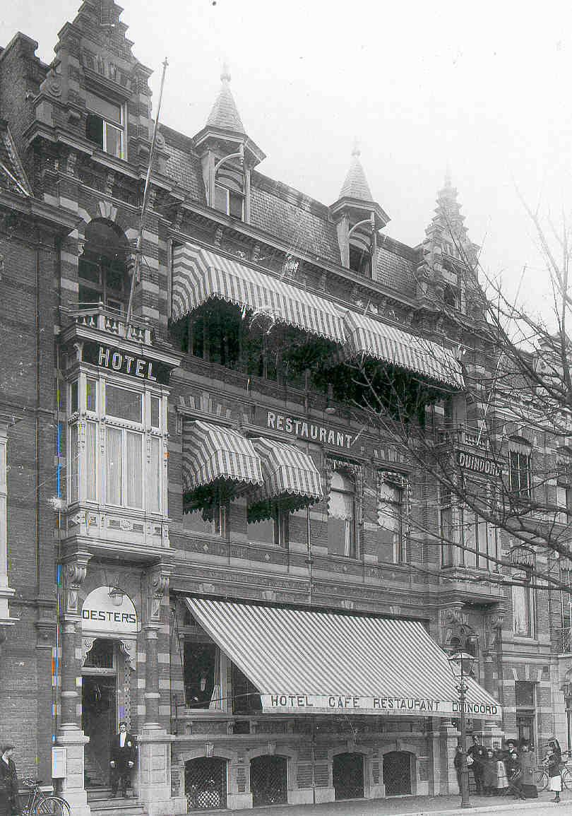 PAND in neo-renaissance trant uit het einde van de 19e eeuw, versierd met banden, geblokte strekken en boven de risaliet, waarin een houten erker, een topgevel.
