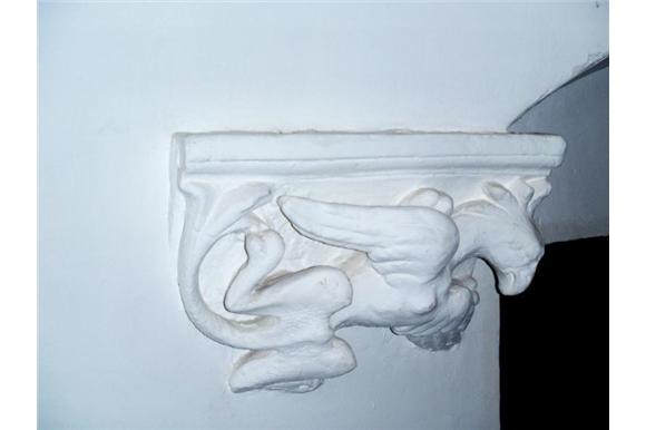 Nr 3 heeft een arkeltorentje rustend op een zandstenen kolonnet, bekroond door een open houten lantaarn met spits. Rechts een erker met snijwerk, gedragen door zandstenen consoles.