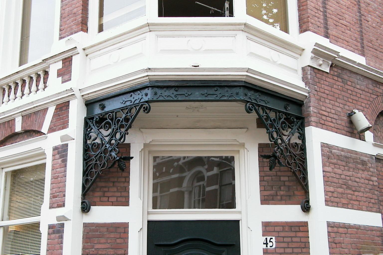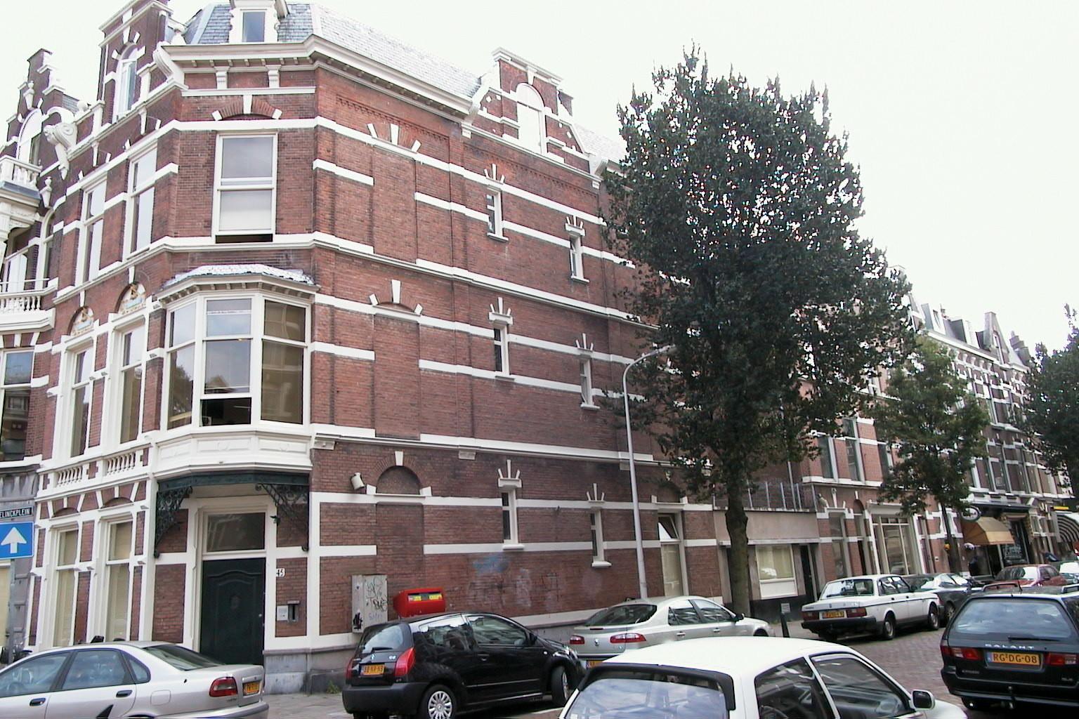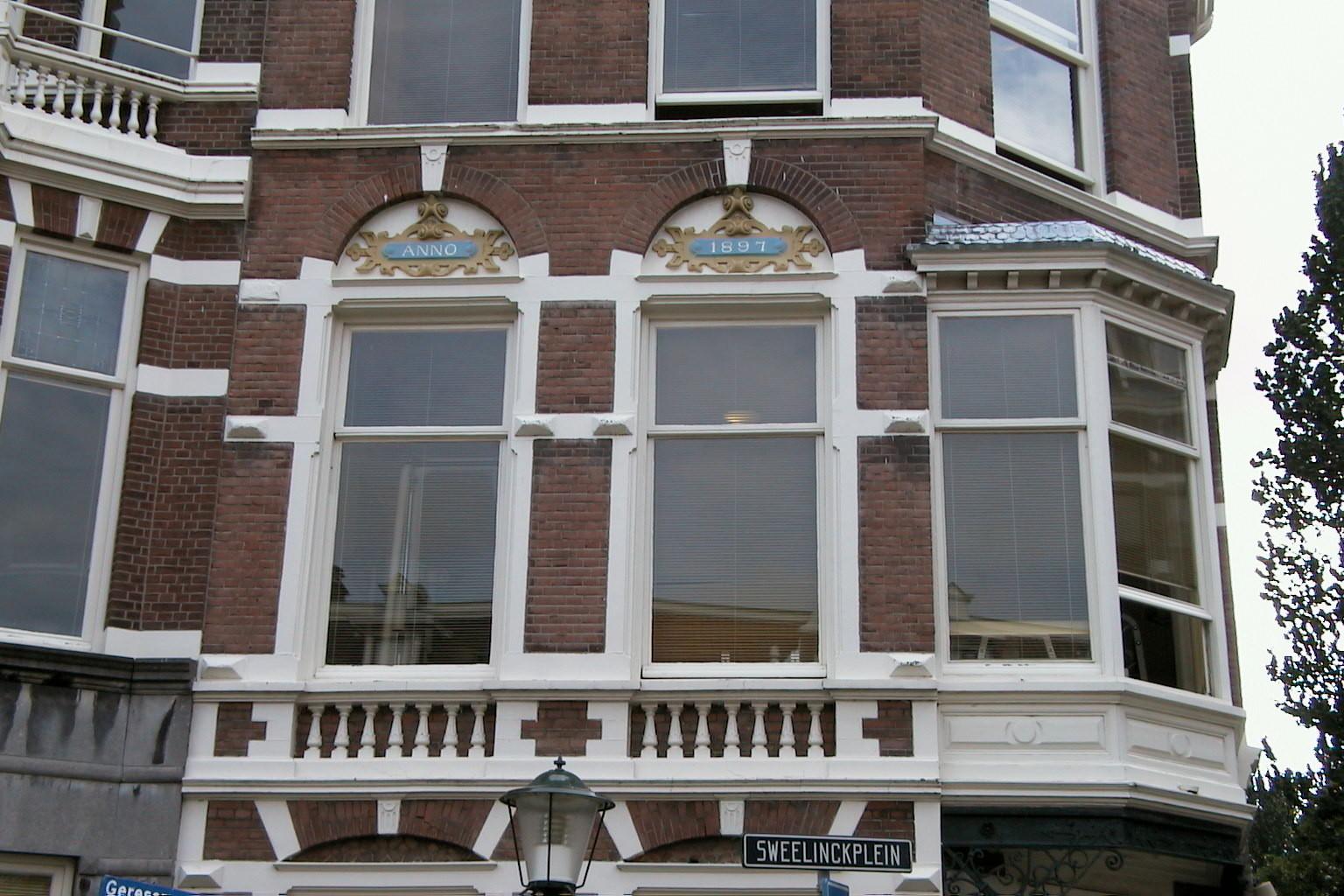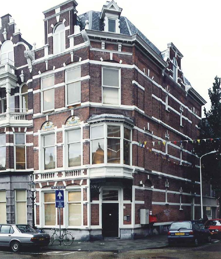 Hoekpand Reinkenstraat in neo-renaissance trant; eind 19e eeuw. Pand met afgeschuinde hoek en trapgevels, gedateerd 1897 op cartouches. Versiering van banden, blokken en ontlastingsbogen. Erker op de hoek op ijzeren draagcontractie.