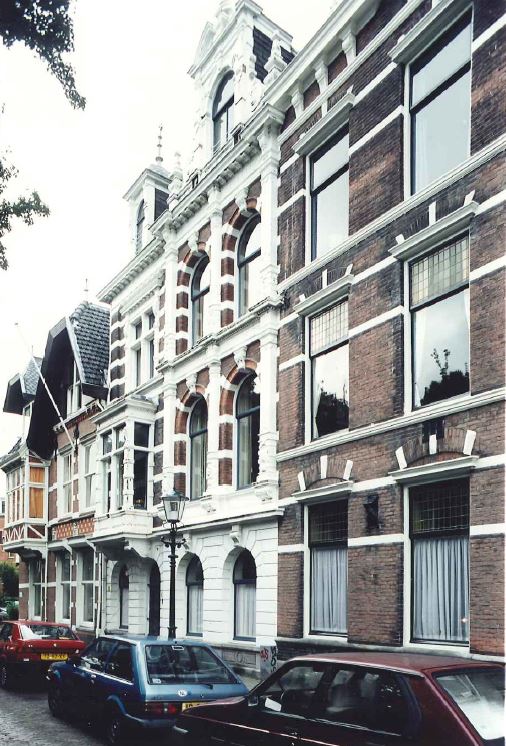 Pand met renaissancegevel, eind 19e eeuw. Zeer rijke gevelbehandeling met banden, halve zuilen en pilasters met bewerkte schachten, sluitstenen, lijsten en consoles. Topgevel met voluten en bekronend gebroken fronton. Getoogde parterrevensters. Links een erker op consoles.