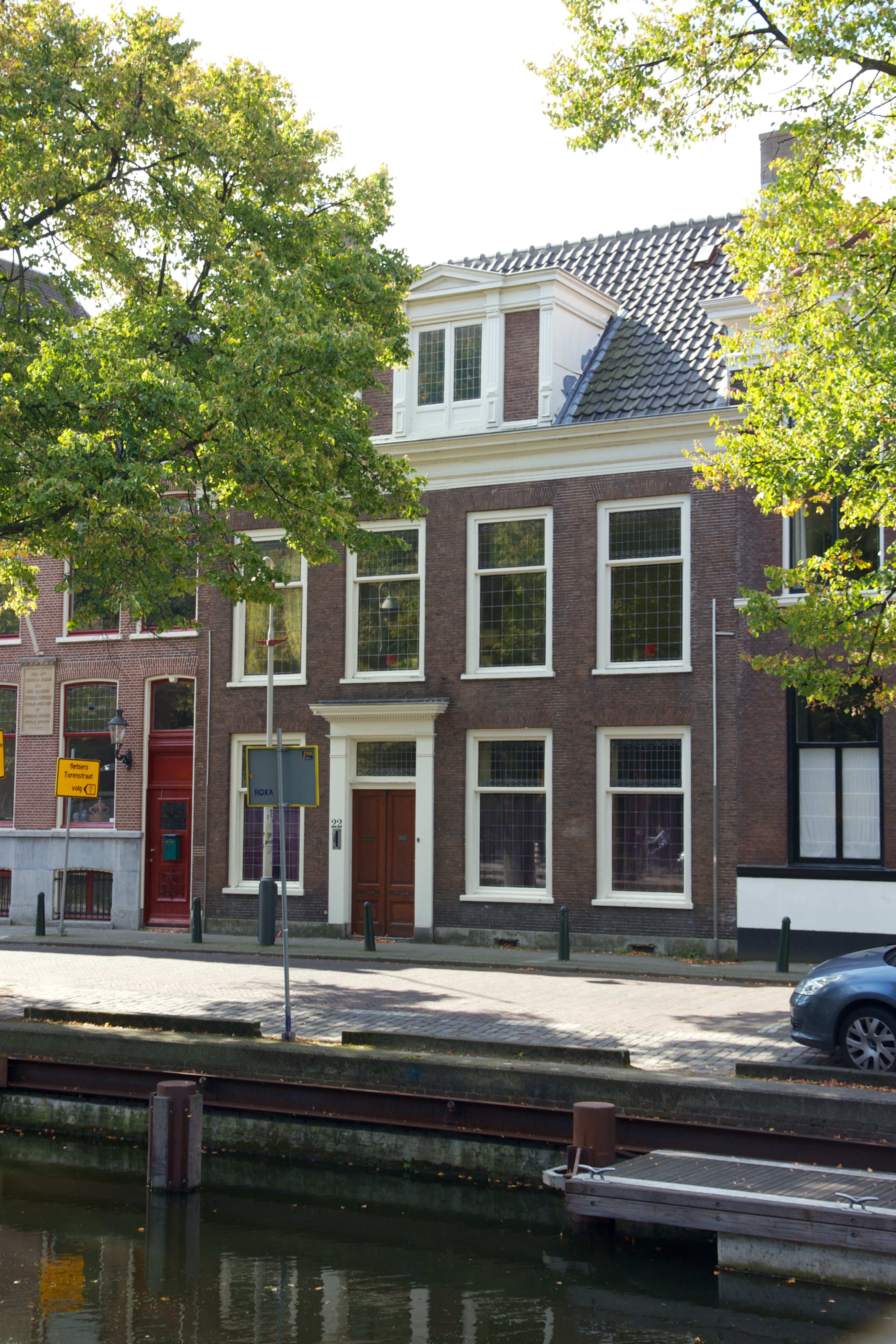 Vroeg 19e eeuws pand met vierassige lijstgevel onder dwars geknot en met zwarte pannen gedekt dak. Links onder in de gevel een steen met het jaartal 1822 en verder onleesbare tekst. De gevel heeft een hardstenen plint, vensters onder strekken, tweelicht-schuiframen met houten dorpels en een forse kroonlijst. Fraaie deur uit de bouwtijd met snijwerk en getorste middennaald. De entrée bezit een deuromlijsting met pilasters en hoofdgestel met tandlijst (alles uit de bouwtijd) en een bovenlicht met glas-in-lood uit c. 1900. Alle vensters zijn voorzien van door glas afgedekte glas-in-lood ramen. Brede dakkapel met pilasters en fronton uit de tweede helft van de 19de eeuw. Betrekkelijk gaaf en zeldzaam pand uit het begin van de 19e eeuw. Eén van de oudste huizen vlak buiten de 17e eeuwse omgrachting van de stad.
