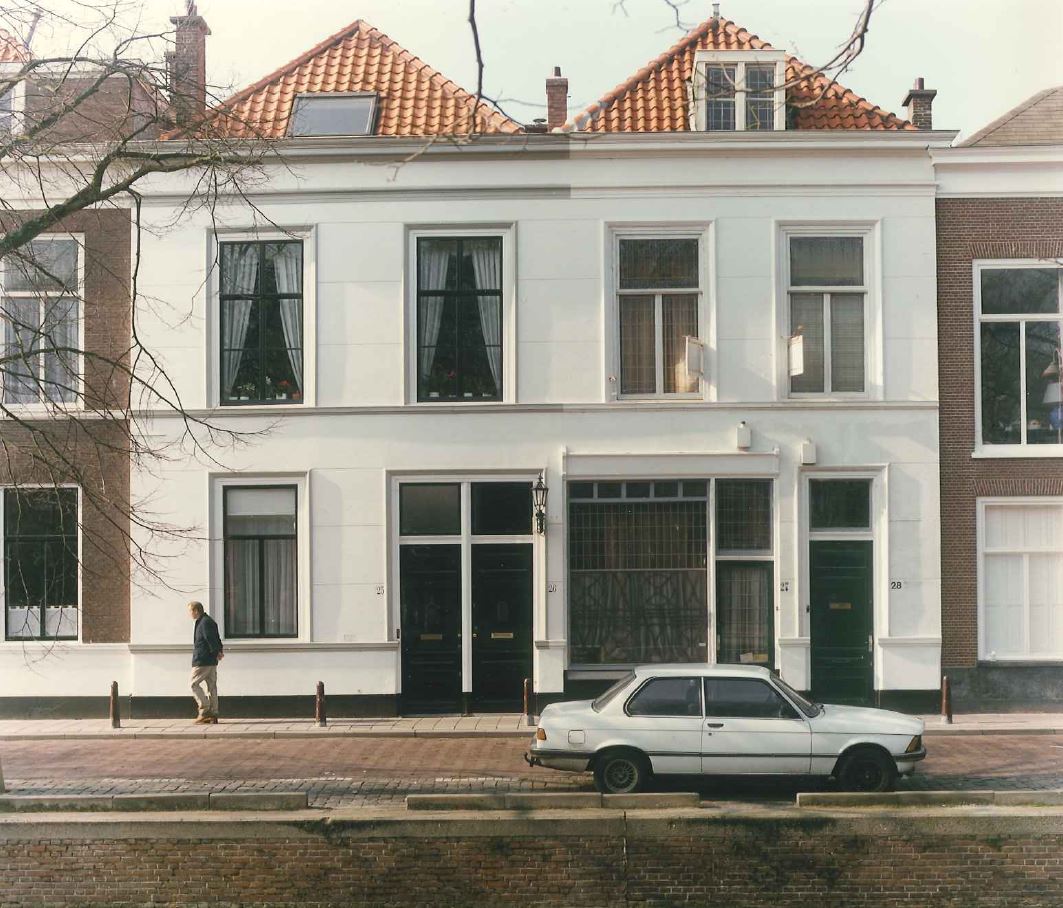 Woon-winkelpand uit 1862, oorspronkelijk twee huizen, bestaande uit parterre en verdieping met twee, door pannen gedekte schilddaken waarvan de nok loodrecht staat op de straat. De lijstgevel is voorzien van een geblokte bepleistering. De nummers 25 en 26 zijn toegankelijk door twee gekoppelde deuren met panelen en bovenlichten. De parterre van 27 en 28 bezit een etalageraam en een deur met panelen en bovenlicht. Het venster in de linker travee bevat een T-raam; de verdiepingsvensters bezitten zesruitsschuiframen. Alle vensters en deuren zijn gevat binnen geprofileerde, houten omlijstingen. In de gevel van no. 25 bevindt zich een stichtingssteentje met het opschrift: "3W. RK 24-9-1862".