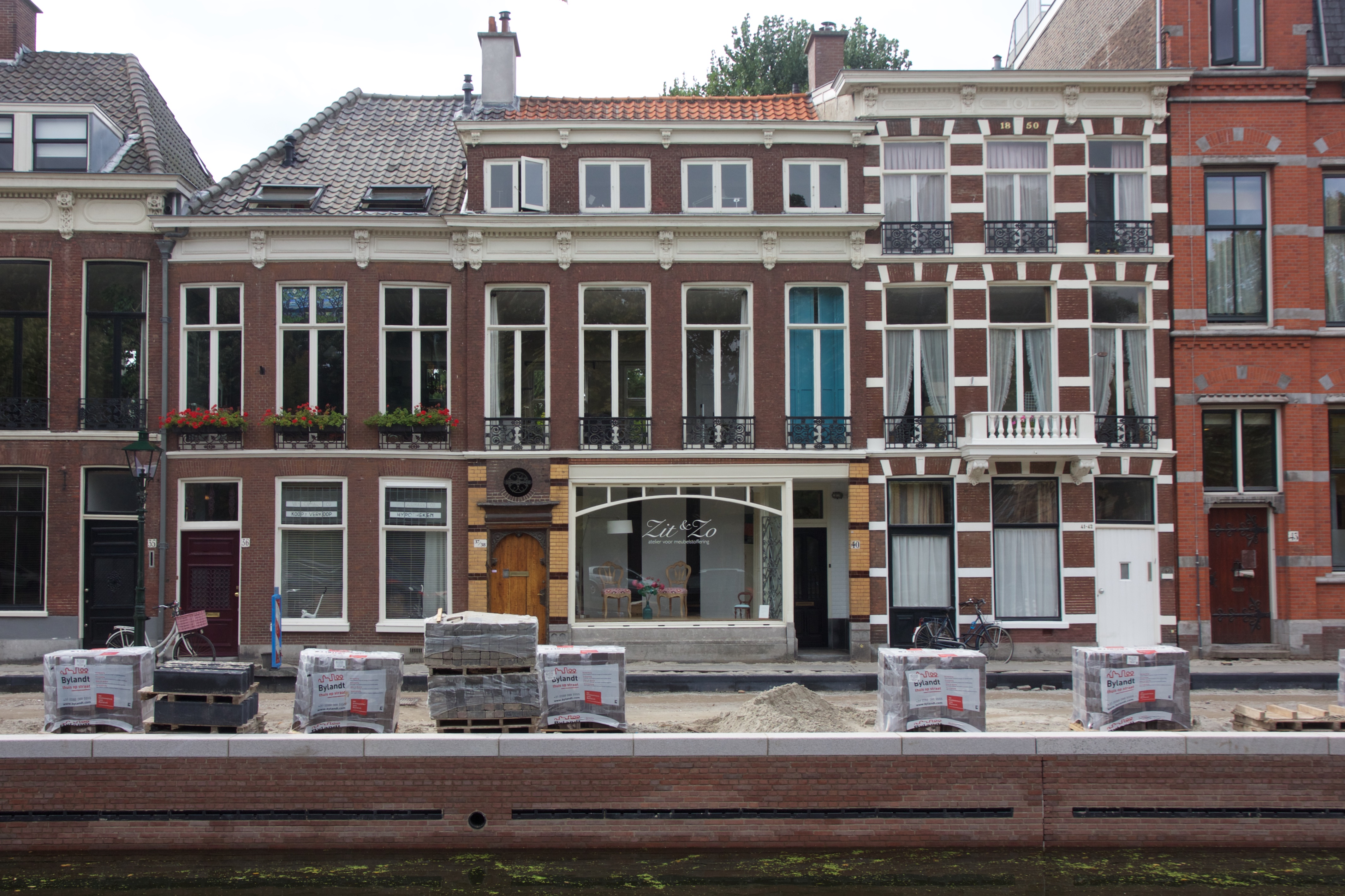 Winkel-woonhuis in eclectische stijl uit omstreeks 1862 ter breedte van vier vensterassen en bestaande uit parterre, verdieping en attiekverdieping in het zadeldak dat deel uitmaakt van het dak over no. 36. Oorspronkelijk vormde het pand met nummer 36 een groep van drie vrijwel identieke huizen. De parterre bezit een hardstenen plint en een eenvoudige Art Nouveau-winkelpui, geflankeerd door verblendstenen hoekpenanten. Rechts een portiek met daarin de winkeldeur en de deur van het woonhuis, die panelen en glas met siertraliewerk vertoont. In de linker travee een getoogd poortje met gebeeldhouwde houten zwikken, consoles en kopjes in neorenaissancestijl en daarboven een rond venster met siertraliewerk. De vensters in de hoge verdieping bezitten T-ramen met French windows en rijk versierde ijzeren raamhekjes. Tussen parterre en verdieping een geprofileerde cordonlijst. Het hoofdgestel van de gevel bestaat uit een fries met panelen en een kroonlijst met tandingen en vijf versierde consoles. Boven de kroonlijst is een attiek over de volle breedte, afgesloten door een dunne kroonlijst met bladconsoles.