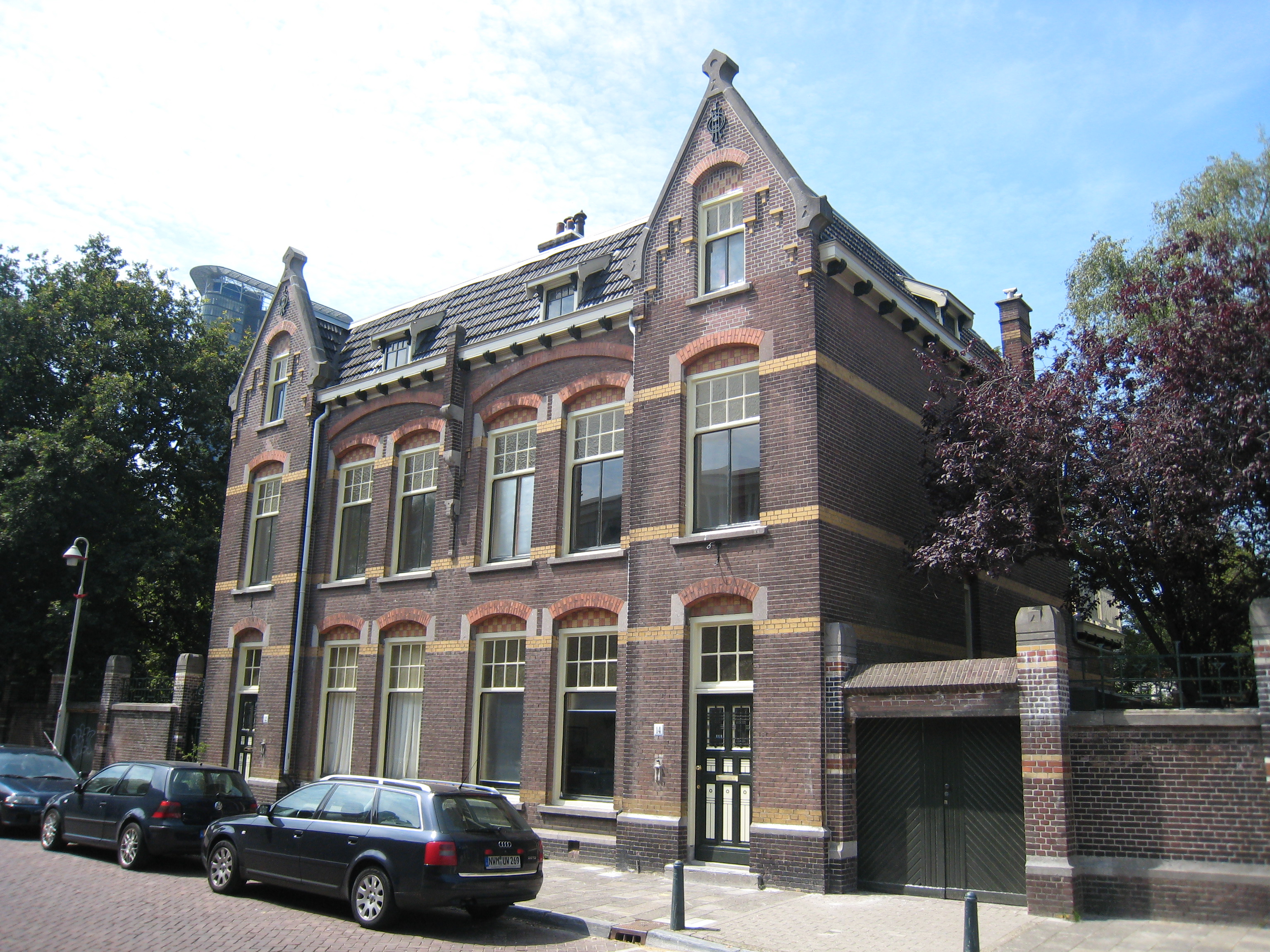Dubbele dienstwoning met tuinmuur van architectuurhistorisch belang als waardevol voorbeeld van overgangsarchitectuur en van belang als onderdeel van het complex van de voormalige Tweede Gemeentelijke Gasfabriek.