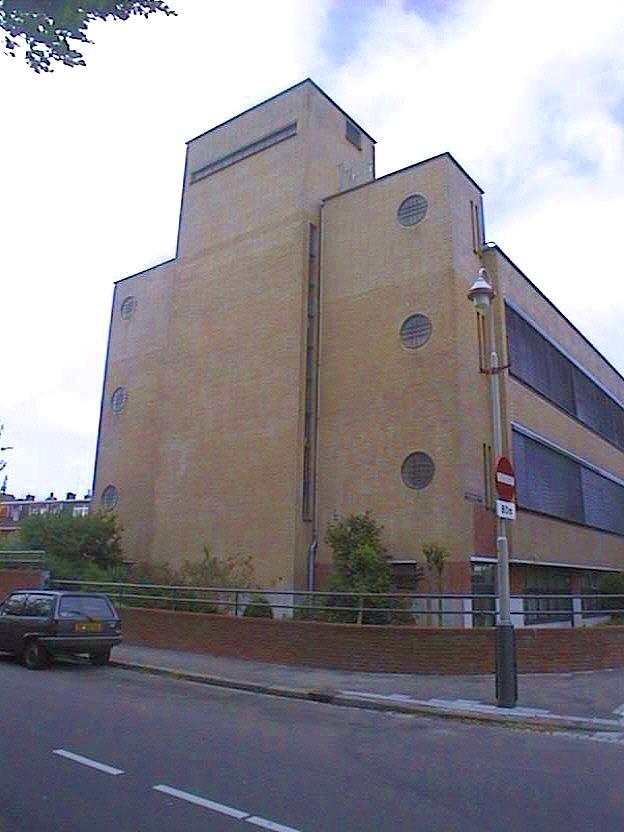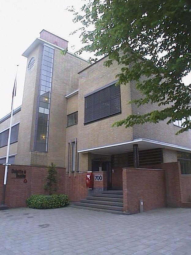 Kantoorgebouw op L-vormige plattegrond op de hoek van de Van Alkemadelaan en de Waalsdorperweg en aansluitend bouwblok van vier etagewoningen aan de Waalsdorperweg, dat in hoofdzaak een rechthoekige plattegrond vertoont. Het geheel is gebouwd in 1933-1935 naar ontwerp van de architect Jan Wils en behoort stilistisch tot het Nieuwe Bouwen. N.B.: het kantoorpand is in 1949-1950 aan de zijde van de Van Alkemadelaan met een verdieping verhoogd en aan de zijde van de Waalsdorperweg gewijzigd naar ontwerp van Jan Wils en F. Ottenhof. De oorspronkelijke stalen ramen zijn vervangen door aluminiumramen met dubbele beglazing, die het authentieke aspect benaderen.