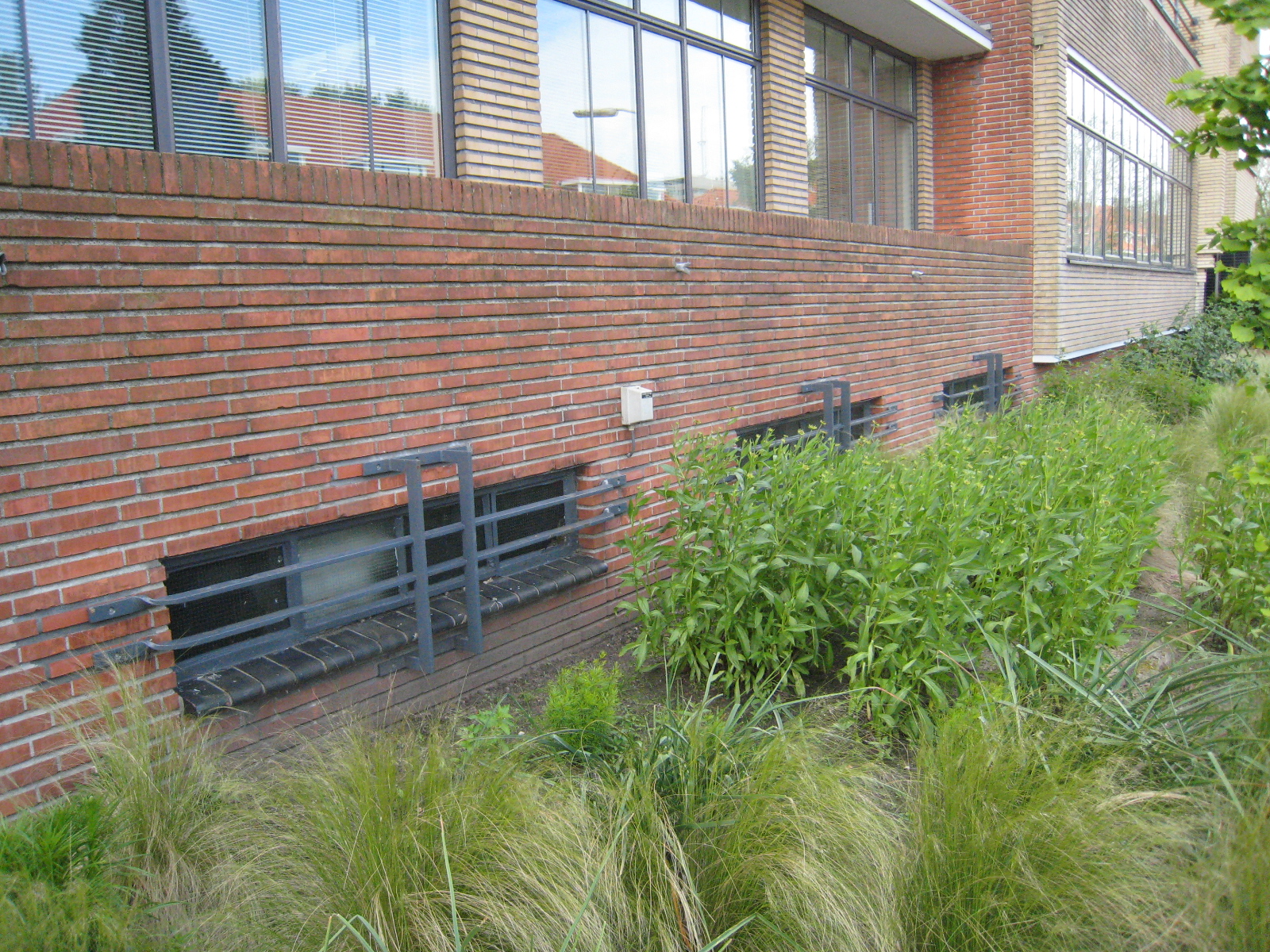 Het kantoorpand bestaat uit souterrain, beletage, verdieping en terugspringende, later toegevoegde, bovenverdieping. De trappehuizen bij de hoek met de Waalsdorperweg en aan de zijde van de Bronovolaan zijn hoger opgetrokken en manifesteren zich als verticale bouwelementen. De ingangspartij, met een luifel, is opgenomen in het rechthoekige, lagere bouwlichaam dat de hoek met de Waalsdorperweg markeert. Het gebouw bezit een constructie van gewapend skeletbeton en de gevels zijn bekleed met bezande gele handvormsteen en, tegen hun benedendeel, met rode verblendsteen. De onderdorpels van de vensters zijn uitgevoerd in zwart verglaasde raamdorpelsteen. De gevels en borstweringen zijn afgedekt met gepolijste doornikse steen. De buitentrap van de ingangspartij is van basaltlava. De langgerekte vensterstroken hadden oorspronkelijk stalen ramen. In de voorgevel van het trappehuis naast de hoofdingang en in de eindgevels aan de Bronovolaan komen cirkelvormige vensters voor. Voor de ramen van het souterrain zijn versierde diefijzers aangebracht. Aan het portiek voor de hoofdingang zijn zwart verglaasde en goudkleurige steen in afwisselende stroken toegepast. Zwart verglaasde steen is ook gebruikt voor de hoekkolom van de luifel. De stalen deuren van de hoofdingang zijn rood en blauw geschilderd. Hiernaast bevindt zich een glas-in-loodraam uit de bouwtijd. De verticale accenten in het bouwwerk worden versterkt door de hoog opgetrokken en uitgebouwde schoorstenen naast het hoofdtrappehuis en aan het eind van de vleugel langs de Waalsdorperweg. Aan de voorzijde en de zijkanten van het pand zijn lage tuinmuren in rode baksteen gemetseld, waarop stalen hekken. In de oorspronkelijke opzet waren de vergaderzaal en de directiekamers gesitueerd in de korte vleugel langs de Waalsdorperweg. De lange vleugel bevatte twee grote werkhallen op de beletage en de verdieping, die door verplaatsbare glazen wanden naar behoefte konden worden onderverdeeld.
