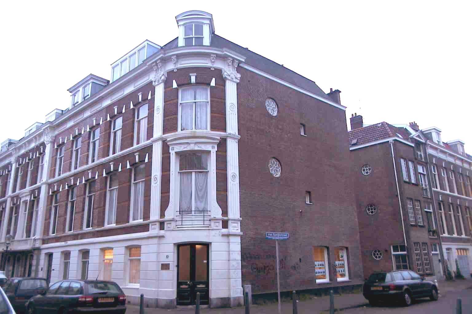 Pand ter breedte van drie vensterassen, parterre en twee verdiepingen. Lijstgevel in eclectische trant. Gebouwd in 1881 door L.N. Leyendekkers, timmerman, en L.F. Leyendekkers. Parterre met geblokte bepleistering; kroonlijst met in het fries panelen. Brede dakkapel uit de bouwtijd. "Speklagen" van verdiepte gele baksteen. De huizen met de nrc. 2 t/m 10 vormen een symmetrische groep.
