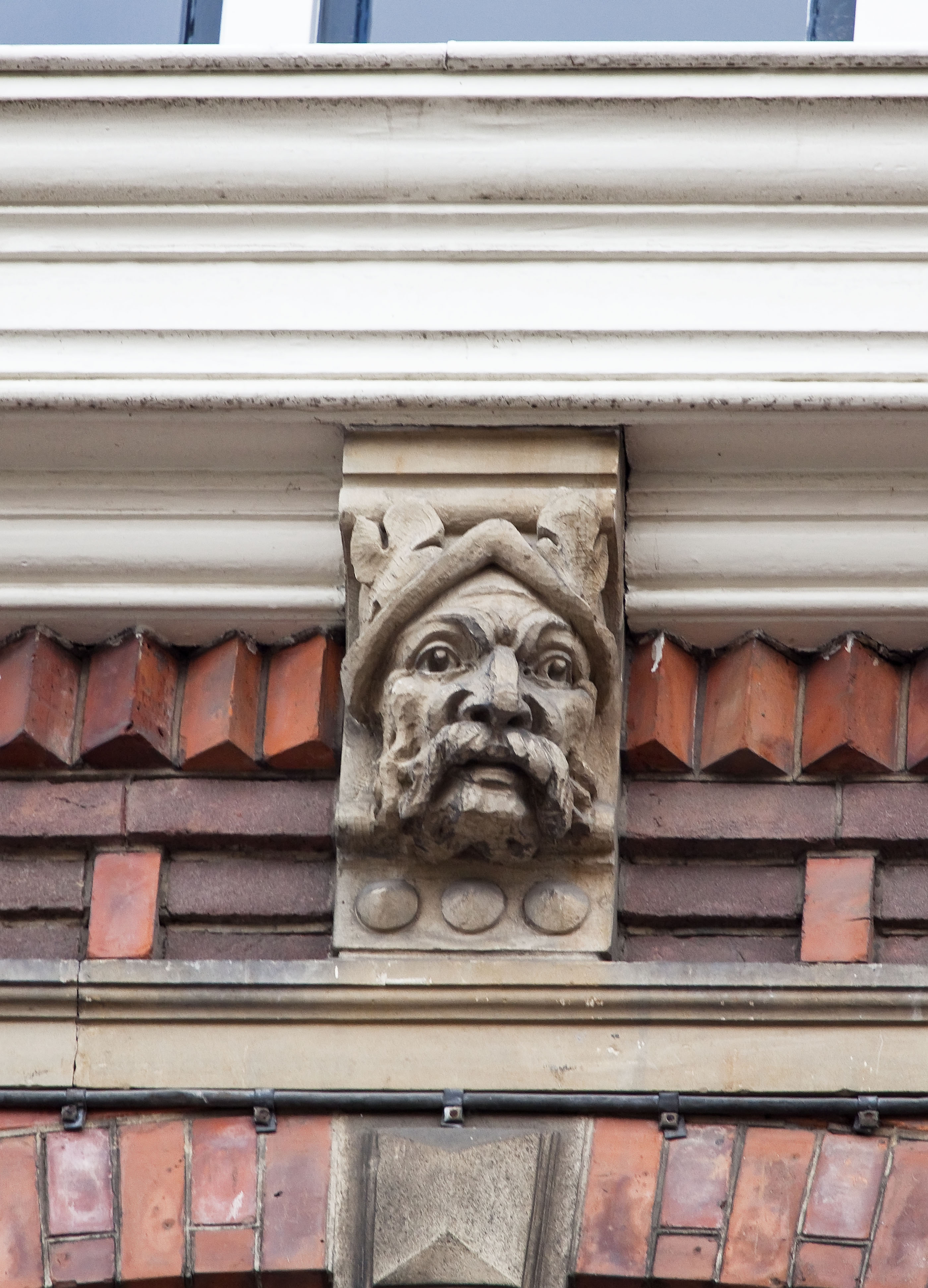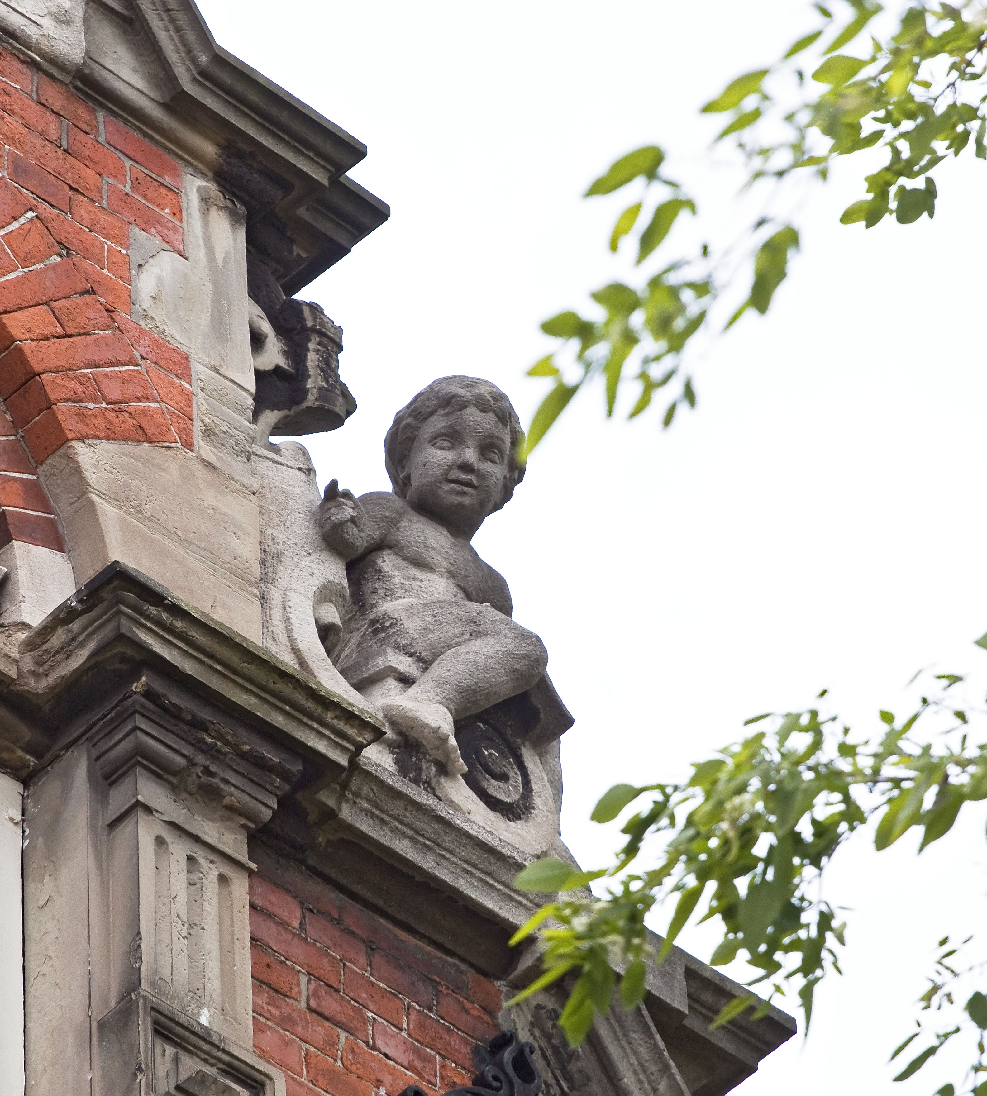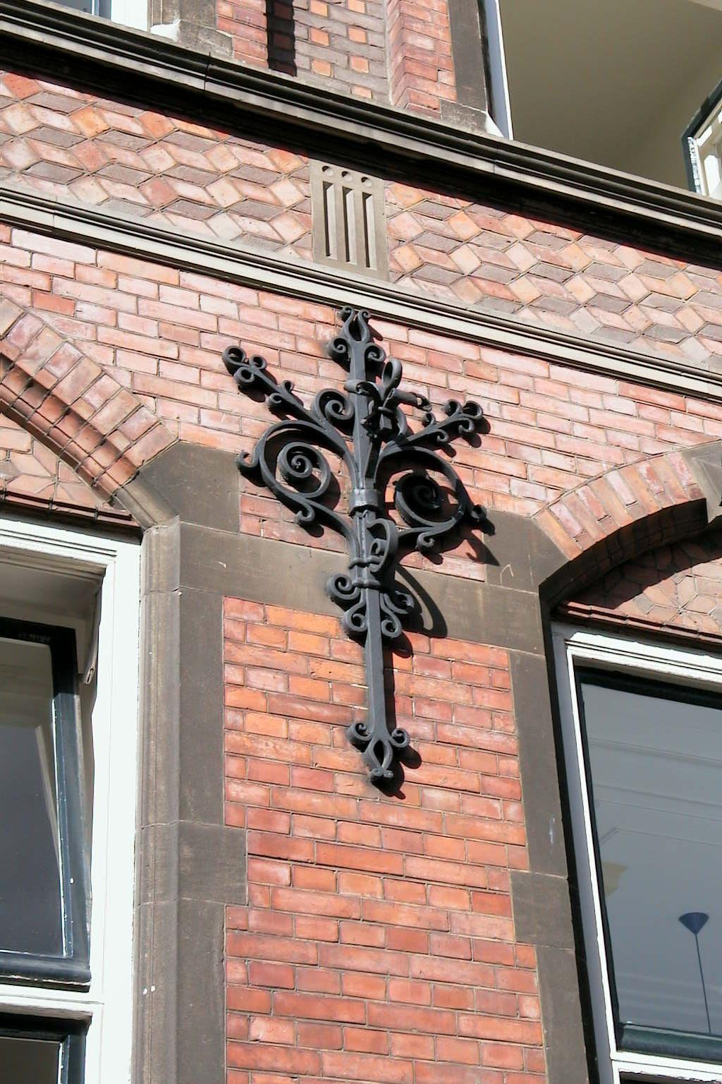 Het pand bestaat uit twee bouwlagen plus zolderverdieping onder omgaand geknot leien dak. Gevel van rode verblendsteen met rijke detaillering, veelal in natuursteen; breedte vier brede vensterassen en twee smalle traveeën ter rechterzijde; dubbele deuren (vierde as van links) uit de bouwtijd, met drie rondboogvensters in rijk gebeeldhouwde natuurstenen omlijsting; hierboven en boven de vensters in de rechter twee assen gebeeldhouwde natuurstenen boogvullingen; de twee smalle assen rechts hebben een puntgeveltop die bekroond wordt door een uil; halverwege op de natuurstenen afdeklijsten putti en consoles; links vier tot trapgevels uitgewerkte dakkapellen; geheel rechts een rondboogpoort met toegang tot achtererf; rijke detaillering blijkt verder uit o,a. zaagtandfries onder de gootlijst en fraaie smeedljzeren sierankers.