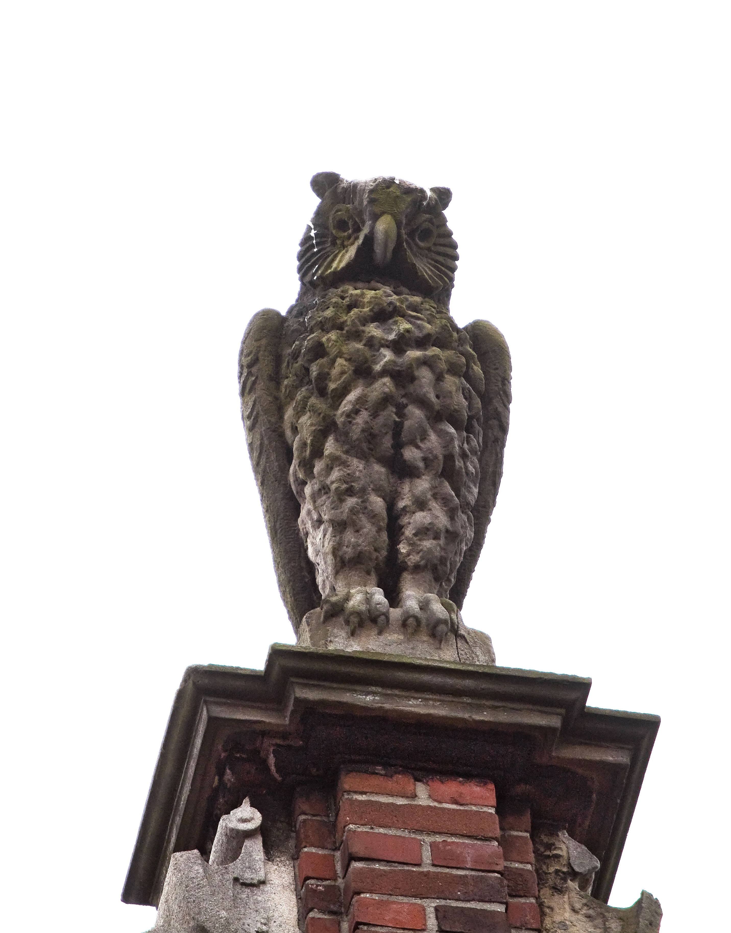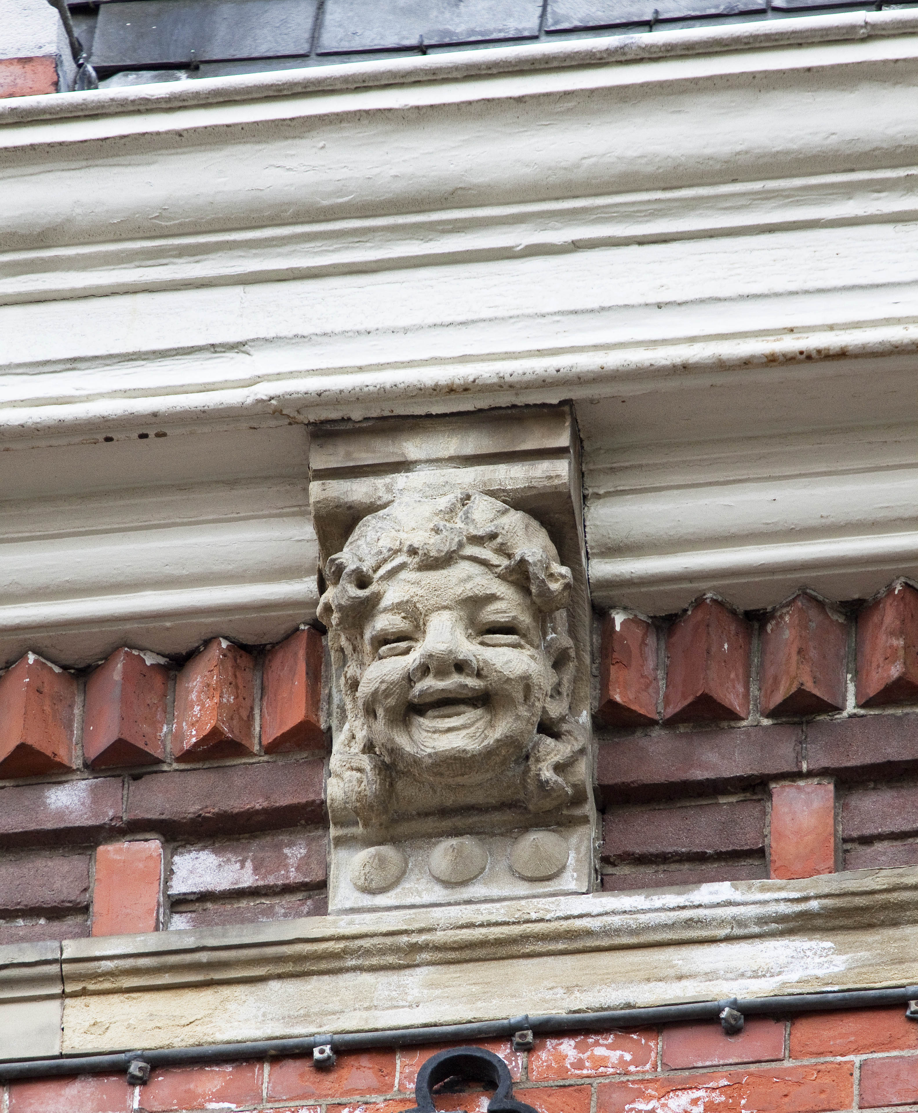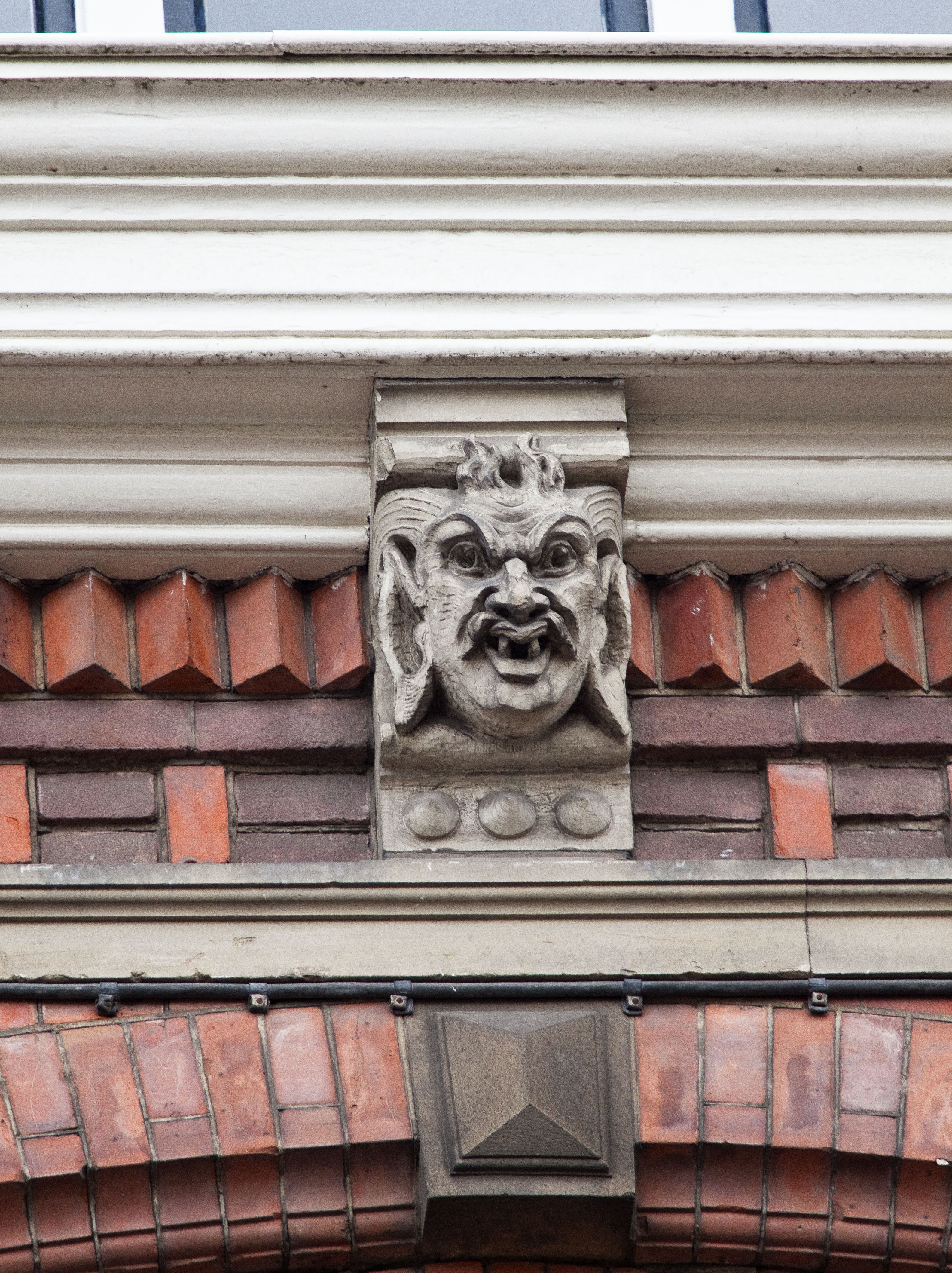 Het pand bestaat uit twee bouwlagen plus zolderverdieping onder omgaand geknot leien dak. Gevel van rode verblendsteen met rijke detaillering, veelal in natuursteen; breedte vier brede vensterassen en twee smalle traveeën ter rechterzijde; dubbele deuren (vierde as van links) uit de bouwtijd, met drie rondboogvensters in rijk gebeeldhouwde natuurstenen omlijsting; hierboven en boven de vensters in de rechter twee assen gebeeldhouwde natuurstenen boogvullingen; de twee smalle assen rechts hebben een puntgeveltop die bekroond wordt door een uil; halverwege op de natuurstenen afdeklijsten putti en consoles; links vier tot trapgevels uitgewerkte dakkapellen; geheel rechts een rondboogpoort met toegang tot achtererf; rijke detaillering blijkt verder uit o,a. zaagtandfries onder de gootlijst en fraaie smeedljzeren sierankers.