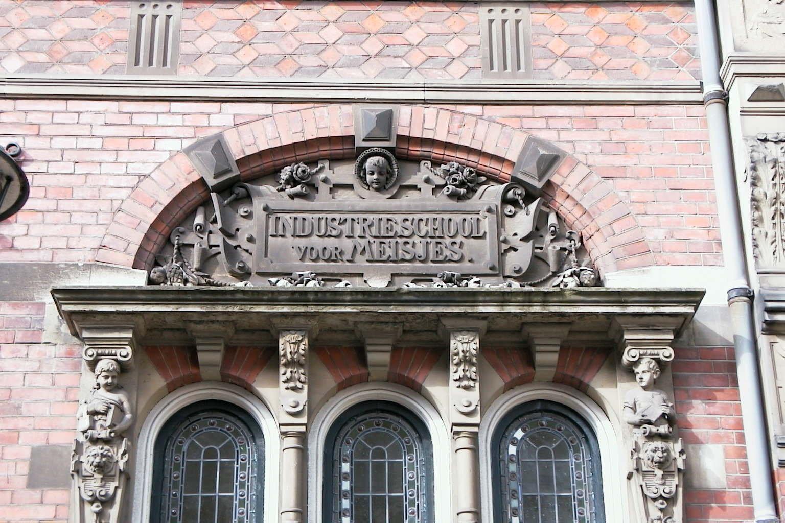 Pand in neo-renaissancestijl, gebouwd als Industrieschool voor Meisjes, naar ontwerp van J.J. van Nieukerken, volgens jaartalstenen anno 1889.