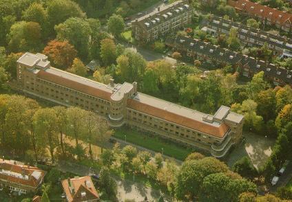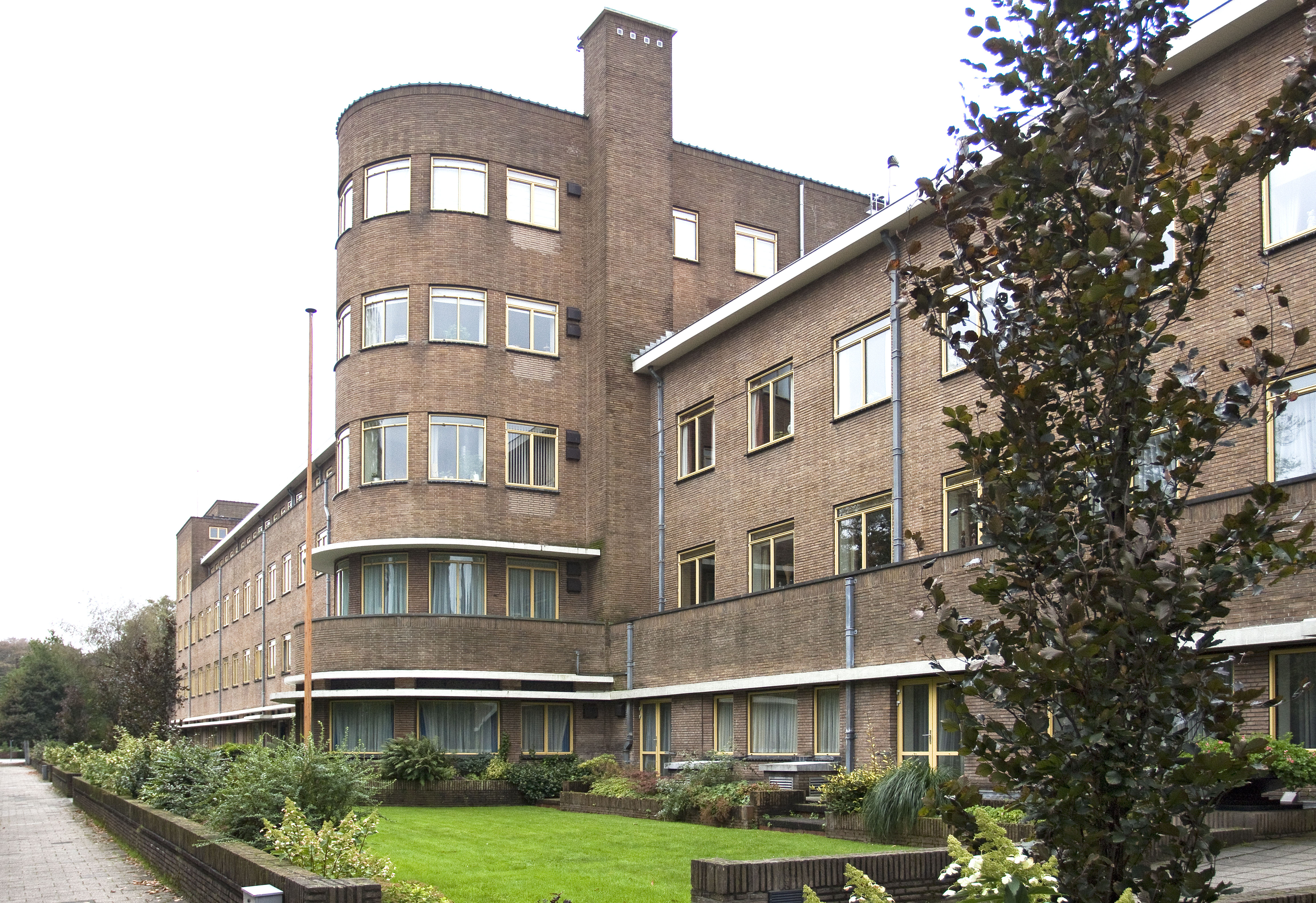 In de oorspronkelijke toestand bezat het gebouw vensters met stalen ramen, in een zachte citroenkleur geschilderd. De trappehuizen zijn aan de achterzijde gesitueerd in de middenpartij en de hoekpartijen. Oorspronkelijke telde het flatgebouw 46 appartementen, varierend van twee tot negen vertrekken. Tevens waren er verscheidene gemeenschappelijke voorzieningen. In de jaren vijftig werd het verbouwd tot kantoor. De tuinmuur die het flatgebouw aan de straatzijde omgeeft, is uitgevoerd in gele baksteen en voorzien van een rollaag. De inritten worden geflankeerd door gemetselde hekpijlers.