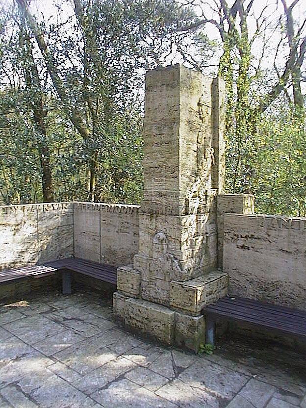 De in expressionistische stijl vormgegeven zitbank is gebouwd van Travertinsteen. De in L-vorm geplaatste zitbank van bron zen staven staan op een vloer belegd met Travertin van circa 7 meter lang en 4 meter breed, die aan de voorzijde wordt afgesloten door een laag muurtje en aan de achter- en zijkant door een hoge wand, waartegen de zitbank steunt.
