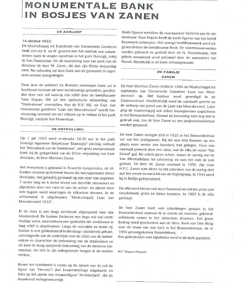 Zitbank uit 1933, getiteld "Monument van Stedenbouw" naar ontwerp van de Haagse architect Co Brandes met medewerking van de beeldend kunstenaar Toon Dupuis.