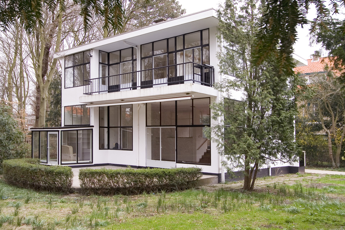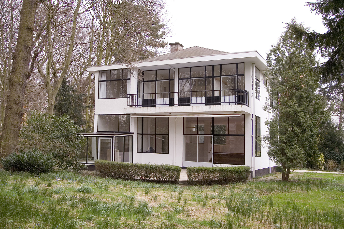 Volgens de principes van het Nieuwe Bouwen door G.Th. Rietveld in opdracht van G.H. Hillebrand in 1935-'36 ontworpen, geheel vrijstaand WOONHUIS met GARAGE.