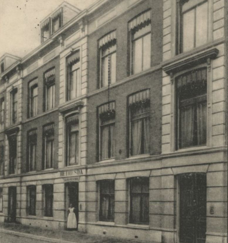 Pand met lijstgevel in eclectische trant; ca. 1881 gebouwd door J.J. van Sonsbeek, timmerman en P. de Zoete, metselaar. Parterre en twee verdie pingen. Breedte: drie vensterassen waarvan de rechter behandeld is als risaliet, met een versiering door blokpleister. Het venster boven de deur bezit een hoofdgestel op consoles met bladversiering. Het hoofdgestel heeft een tandlijst en panelen in het fries en in de risaliet twee neo-Lodewijk XIV consoles. Ondergevel met blokpleister en hardstenen plint.