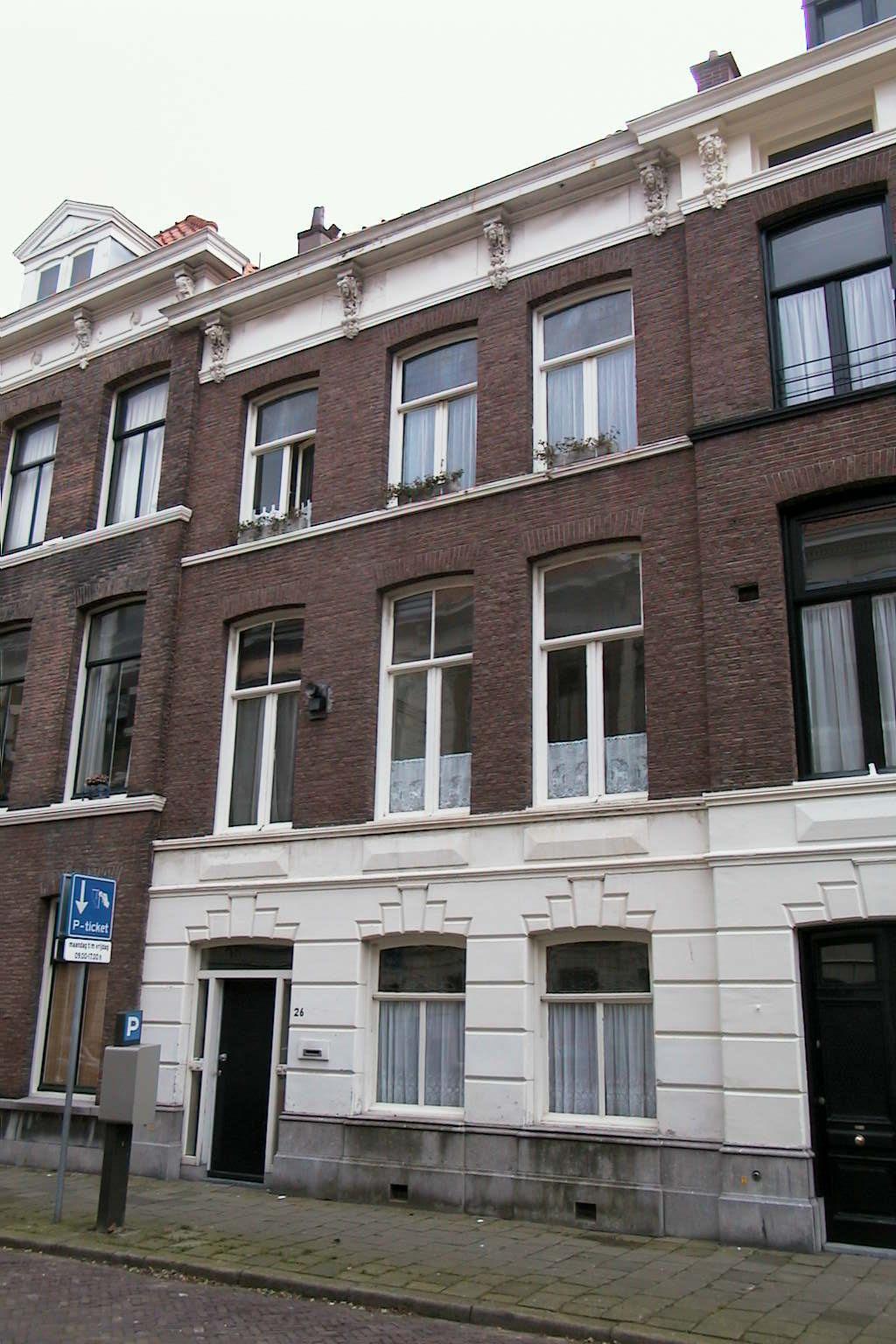 Linker pand van een symmetrisch ontworpen groep van vier eclectische herenhuizen, waarvan de twee middelste panden, Van Speykstraat 28 en 30, licht risalerend zijn uitgevoerd. Deze groep herenhuizen is opgenomen in een gesloten straatwand.