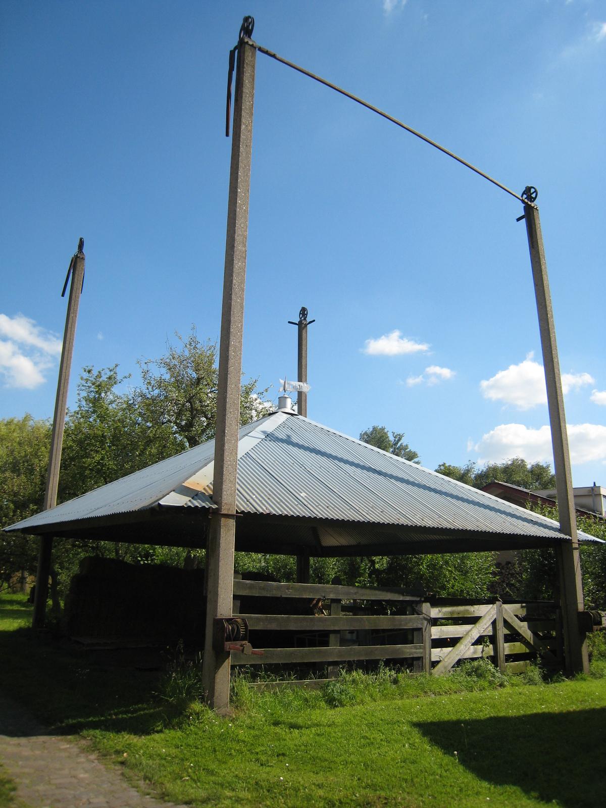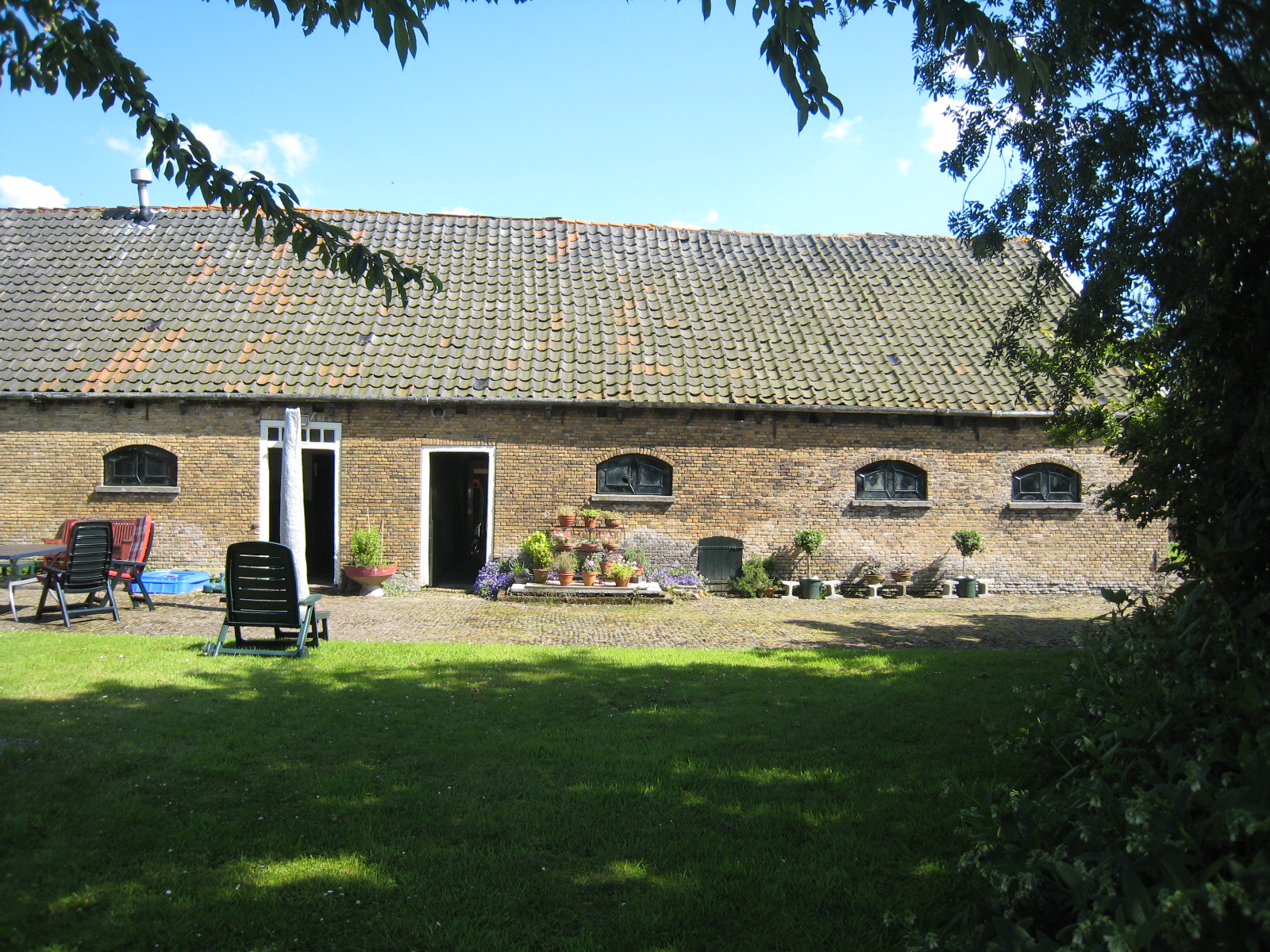 De oorspronkelijke stal in het linker deel is in 1970 eveneens verbouwd tot woning waarvoor de stalramen in de voorgevel zijn vervangen door nieuwe vensters. Evenwijdig aan de langhuisboerderij is aan de achterzijde een iets korter stalgebouw, eveneens op rechthoekige plattegrond en bestaande uit één bouwlaag onder een met pannen gedekt zadeldak. Dit stalgebouw is door middel van een verbindingsgang direct met het hoofdhuis verbonden. Tot de waardevolle elementen van deze boerenhoeve behoort voorts nog een hooiberg met vier betonnen roeden.