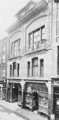 Winkelpand uit 1902, gebouwd voor David en Pieter Lensvelt door de architect J. Mutters jr. in Belgisch-Franse Art Nouveau vormentaal. Natuurstenen gevel waarvan de raampartijen met gietijzeren lateien en smeedijzeren hekwerkjes in grote boogvelden drie aan drie gekoppeld zijn. Rijk beeldhouwwerk met voornamelijk plantenmotieven van M.J. Hack. De gevel met zijn zeer verfijnde ornamentering vormt een hoogtepunt in Mutters werk. De pui dateert uit 1975. David en Pieter bezaten ieder de helft van het pand. Beide panden waren bestemd voor verhuur aan derden.