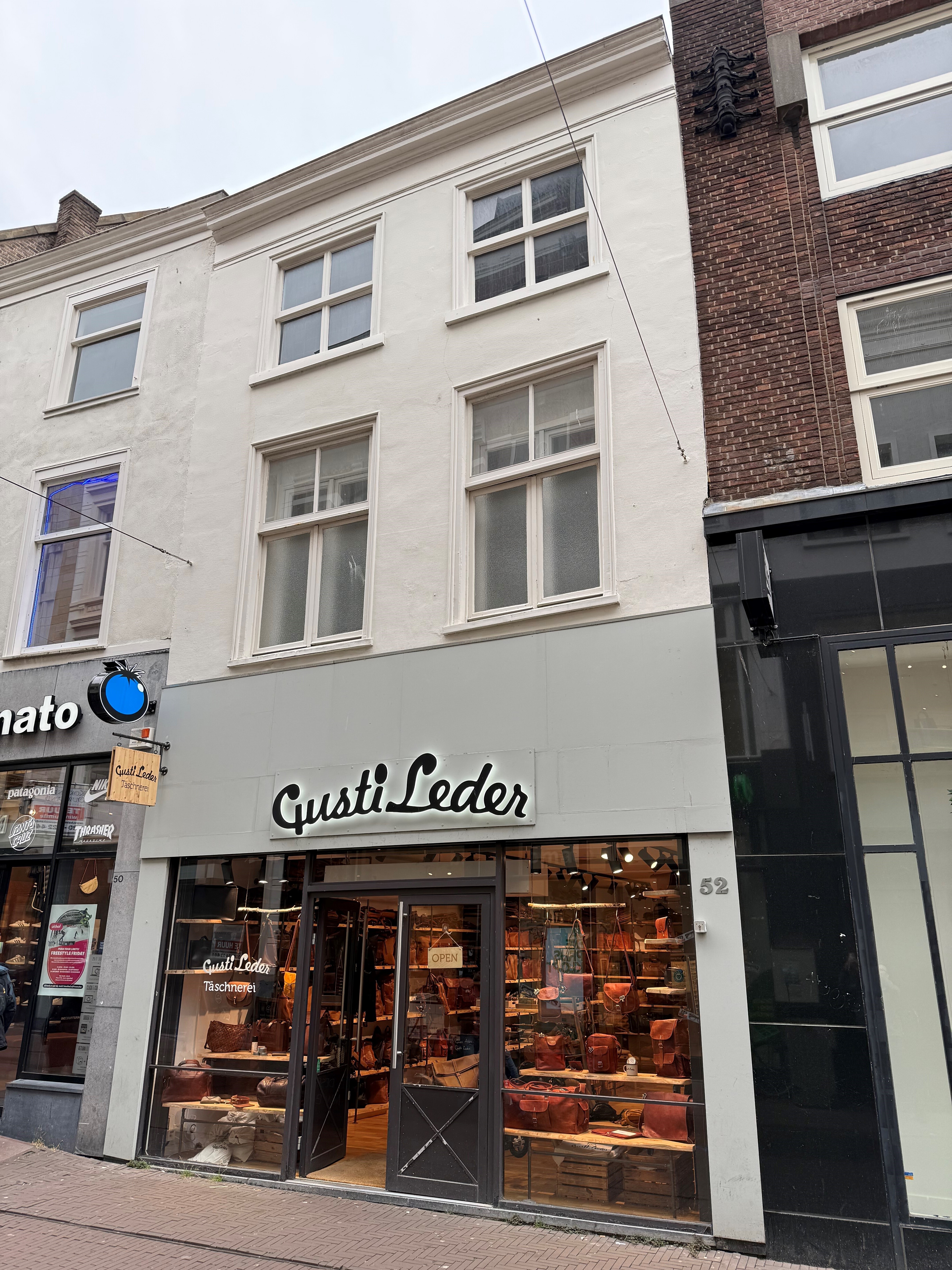 De Venestraat is als sinds de late middeleeuwen een straat waar bedrijvigheid en handel waren geconcentreerd. Rond 1850 doet het winkelconcept zoals wij dat nu kennen haar intrede en worden veel woonhuis- en bedrijfspuien in de bestaande bebouwing vervangen door winkelpuien. De voortschrijdende cityvorming van de binnenstad en daarmee het alsmaar belangrijker worden van de winkelfunctie voor de Venestraat zorgt ervoor dat vanaf 1875 een groot aantal van de oude panden wordt vervangen. De nieuwe winkel-woonpanden panden zijn vaak breder en laten de rijke schakering zien van de snel opvolgende architectuurstijlen vanaf 1875 tot aan het Interbellum. Het pand Venestraat 52 is een goede representant van de nog bewaard gebleven oudere bebouwing van voor 1875. Het is mogelijk dat in het opgaand muurwerk en de balklagen delen van een casco uit de zeventiende eeuw bewaard zijn gebleven. In ieder geval dateert de huidige voorgevel in zijn opzet uit de achttiende eeuw getuige de "op vlucht" gebouwde constructie, de aflopende verdiepingshoogten en de beperkte breedte. De oorspronkelijk in schoon metselwerk uitgevoerde voorgevel werd later voorzien van een stuclaag. De winkelpui is in loop der decennia meerdere malen vernieuwd.