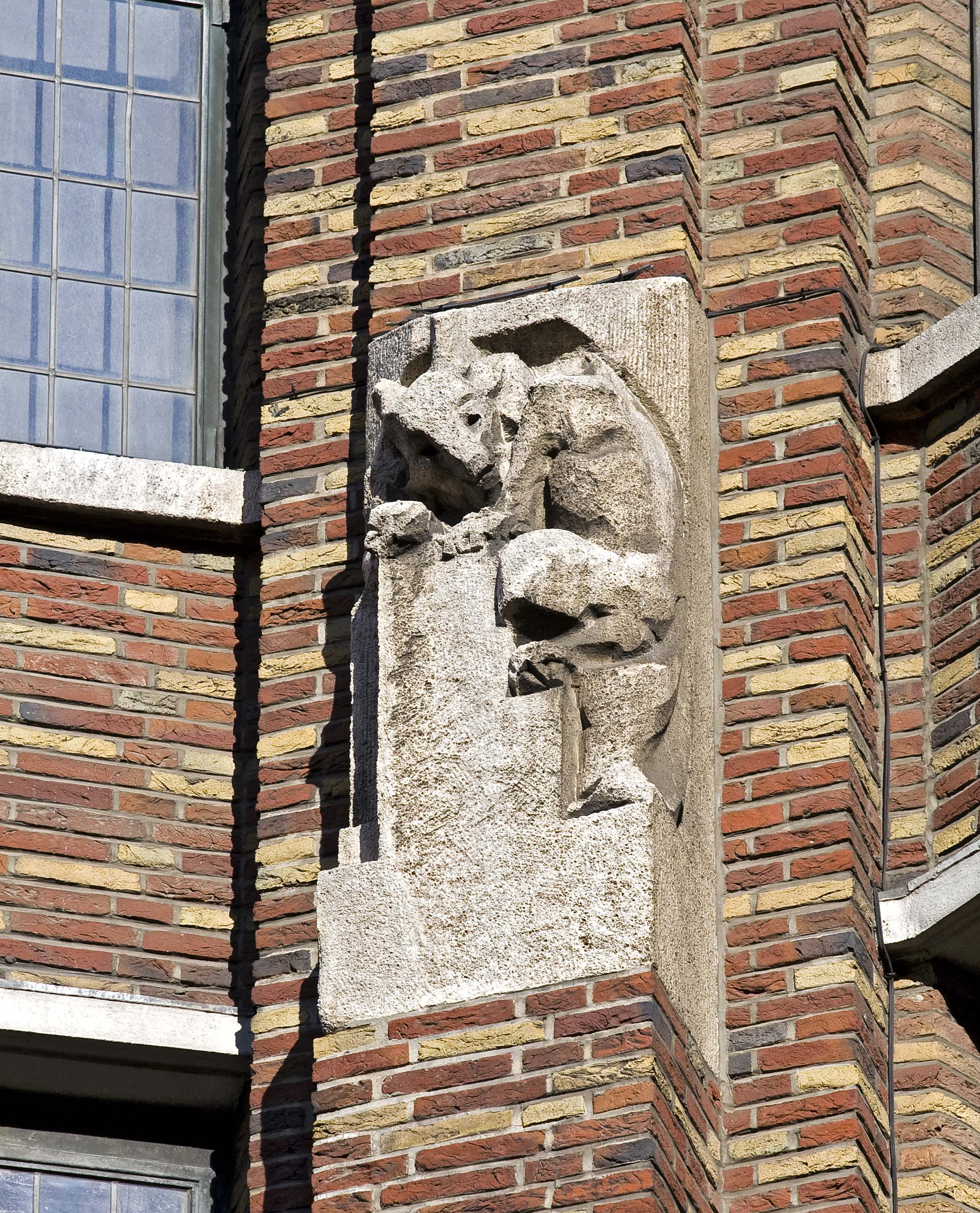 Over het nieuwe gebouw aan de Grote Marktstraat werd een boek uitgebracht waarin op uiterst bloemrijke wijze de lof wordt gezongen van de architectuur, het interieur en de decoraties. 'Zooals de nieuwe bouw daar oprijst aan de kruising van twee machtige verkeerswegen, kloek en toch rank, massaal en toch fijn geleed, met het reliëf van zijn erkerramen, een spel van lijnen en vlakken, van licht en schaduw, van tint en kleur, met den diepen toon van gepolijst syeniet onder de horizontale strekking van de luifel, en het groenige dolomiet daarboven, met die levendige belvedère-steen met zijn sprankelingen van bruin- en donkerpaarsrood, afgewisseld met geel en donkerblauw, gevoegd zoogenaamd Engelsch verband - een kop en twee strekken - bekroond door een dak van romaansche verglaasde pannen, waarvan de kleur ontleend schijnt aan een luministisch palet, is hij schoon uit zich zelf. Maar zoo innig is het verband met de verluchting reeds hier, dat men ze beide niet scheiden kan: de laatste, die eigenlijk in wezen bekleeding is, vloeit er organisch uit voort. Zoo groeit uit de dolomiet, even vanzelfsprekend als ware dit een speling van de natuur, de figuratie voort.'