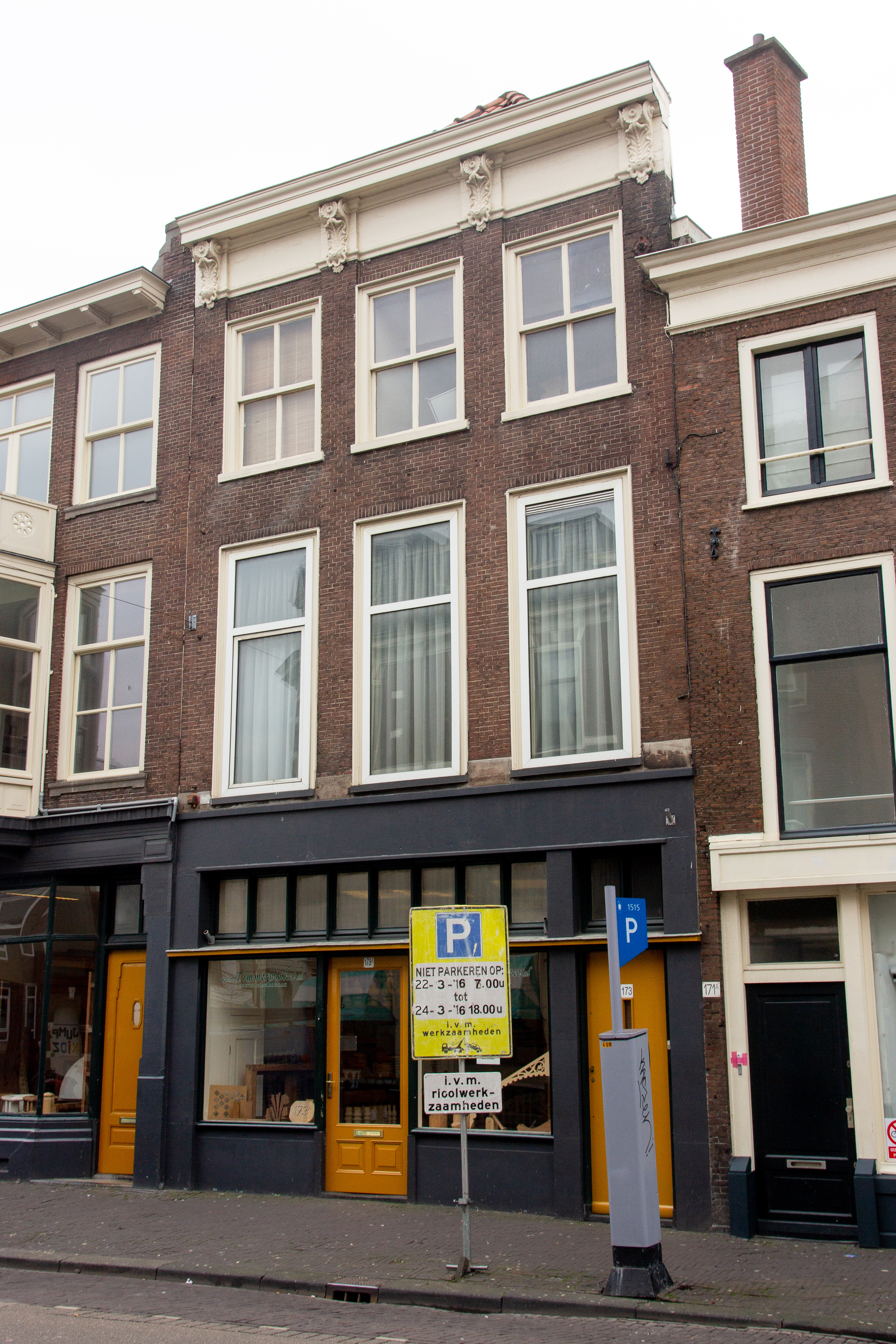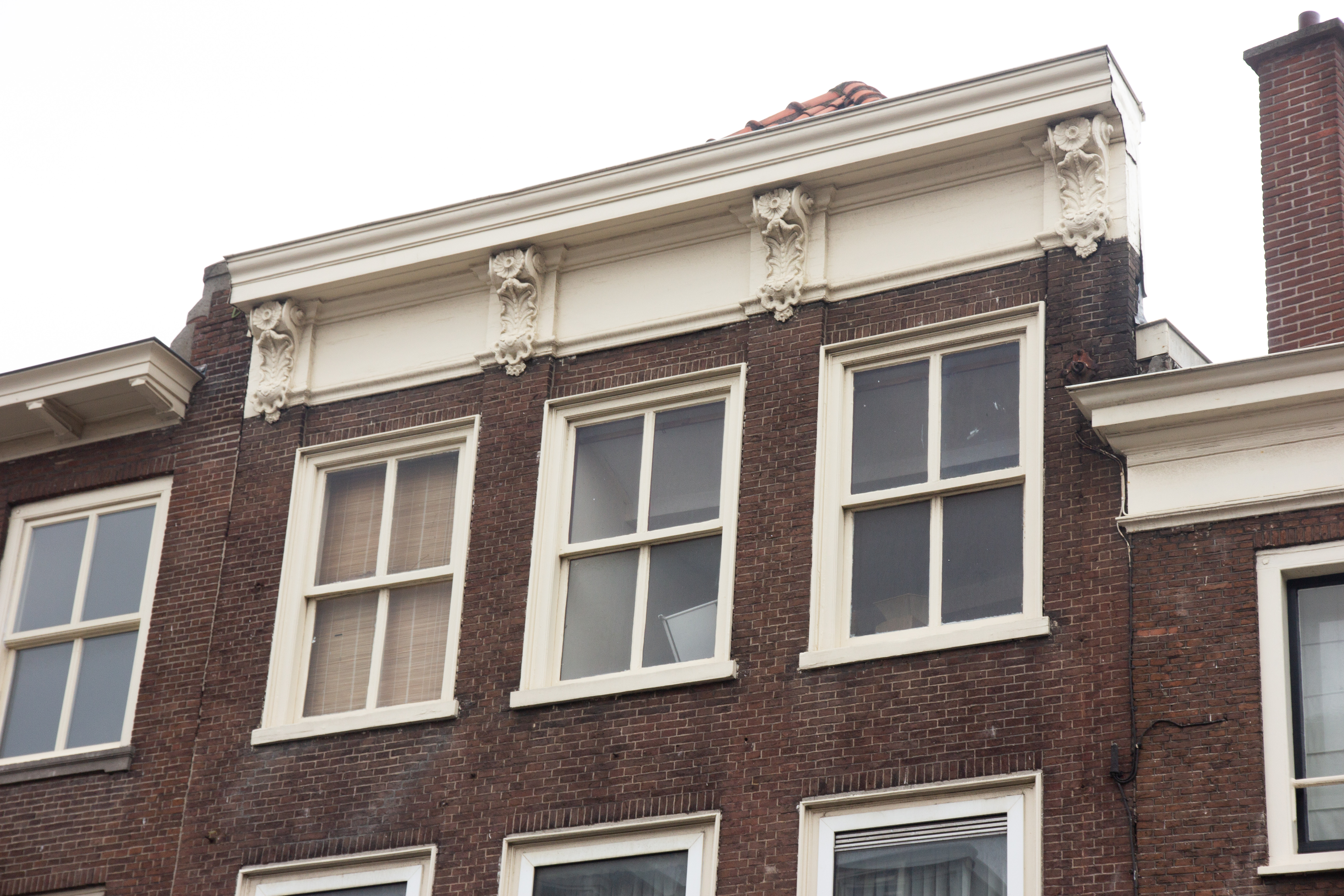 Achttiende eeuws pand met lijstgevel, waarvan de kroonlijst gedragen