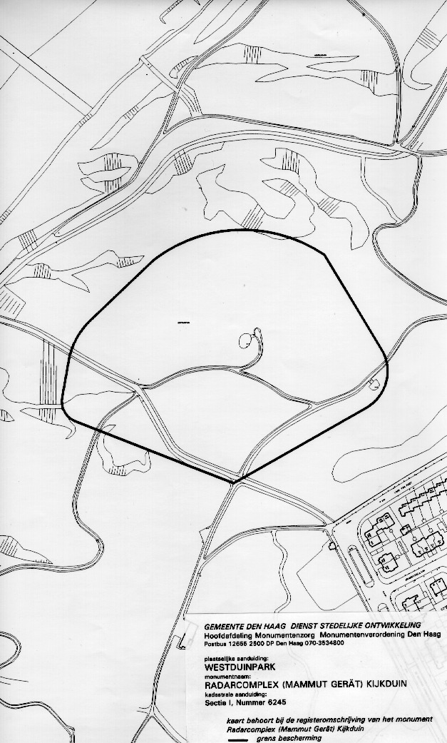 Het terrein van en de veertien onderscheiden objecten binnen het radarcomplex Kijkduin zijn van