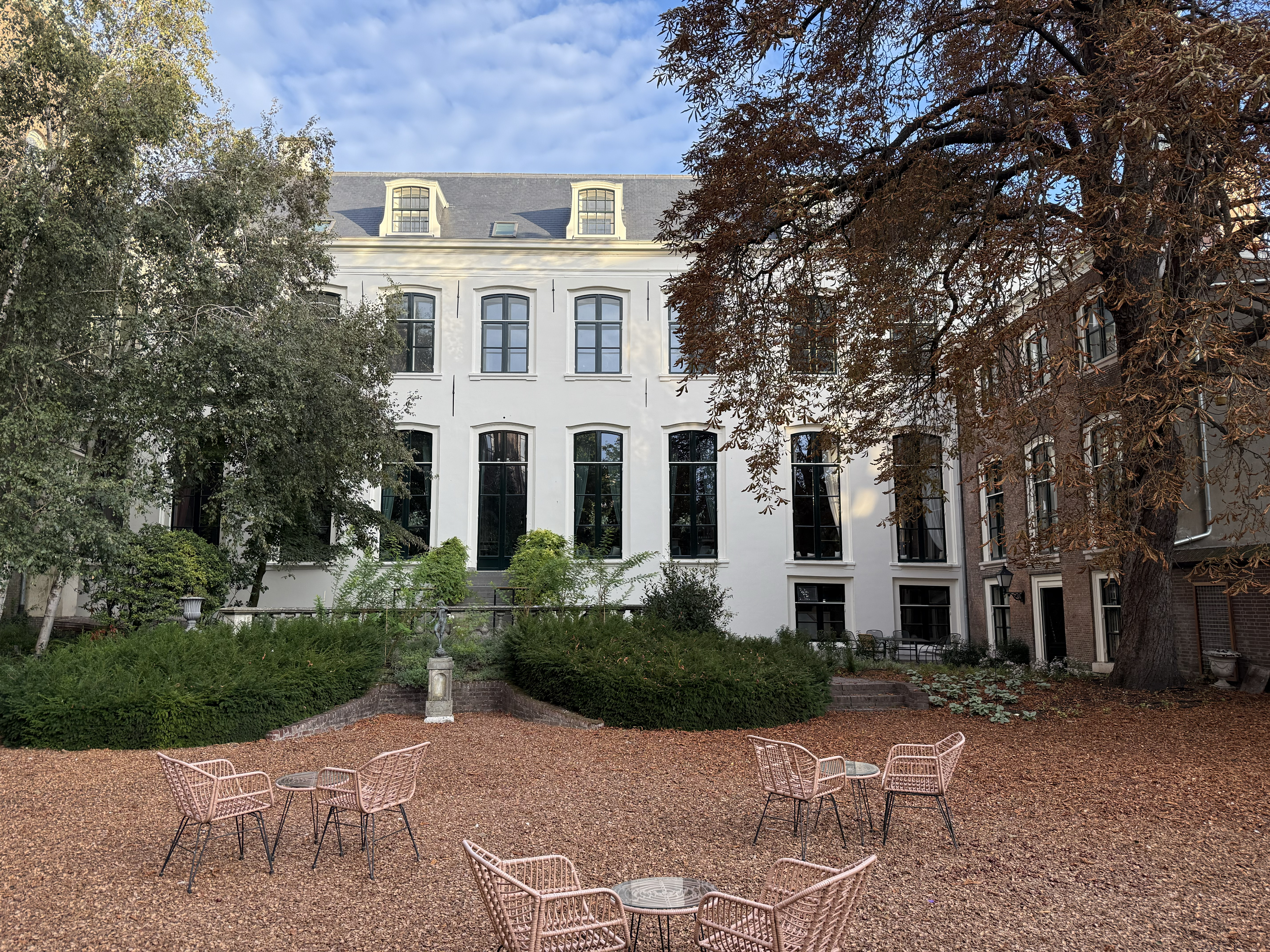 Pand met langgerekte bakstenen gevel met terugliggend gebogen ingangspartij uit 1754 - inwendig rijke decoraties uit de tweede helft van de 18e eeuw.