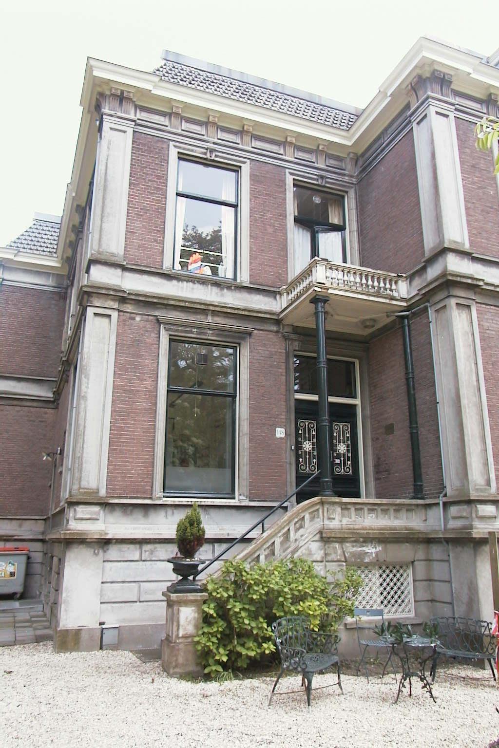 Zijgevel (zuid): links en rechts tegen de hoek van de gevel een vensteras. Rechts op de bel étage een tweeruitsvenster onder segmentboogvormig bovenlicht van de serre. In het midden van het dak een kapel en een bakstenen schoorsteen. Interieur: nagenoeg gaaf interieur onder meer in de hal, gang, trap, kamer en suite en eetkamer op de bel étage en de keuken in het souterrain. De hal en de gang zijn voorzien van paneeldeuren marmeren vloeren en stucplafonds waarbij met name het plafond in de hal zeer rijk uitgevoerd is. De kamer en suite en de eetkamer zijn voorzien van paneellambrizeringen, stucplafonds, hardstenen schoorsteenmantels en schuifluiken voor de vensters. De kamer en suite heeft nog originele schuifdeuren. De trap heeft een geornamenteerde trappaal en een leuning bestaande uit siersmeedijzeren spijlen. De keuken in het souterrain is voorzien van een in een geel met zwart uitgevoerde tegelvloer en oorspronkelijke kasten en schouw.