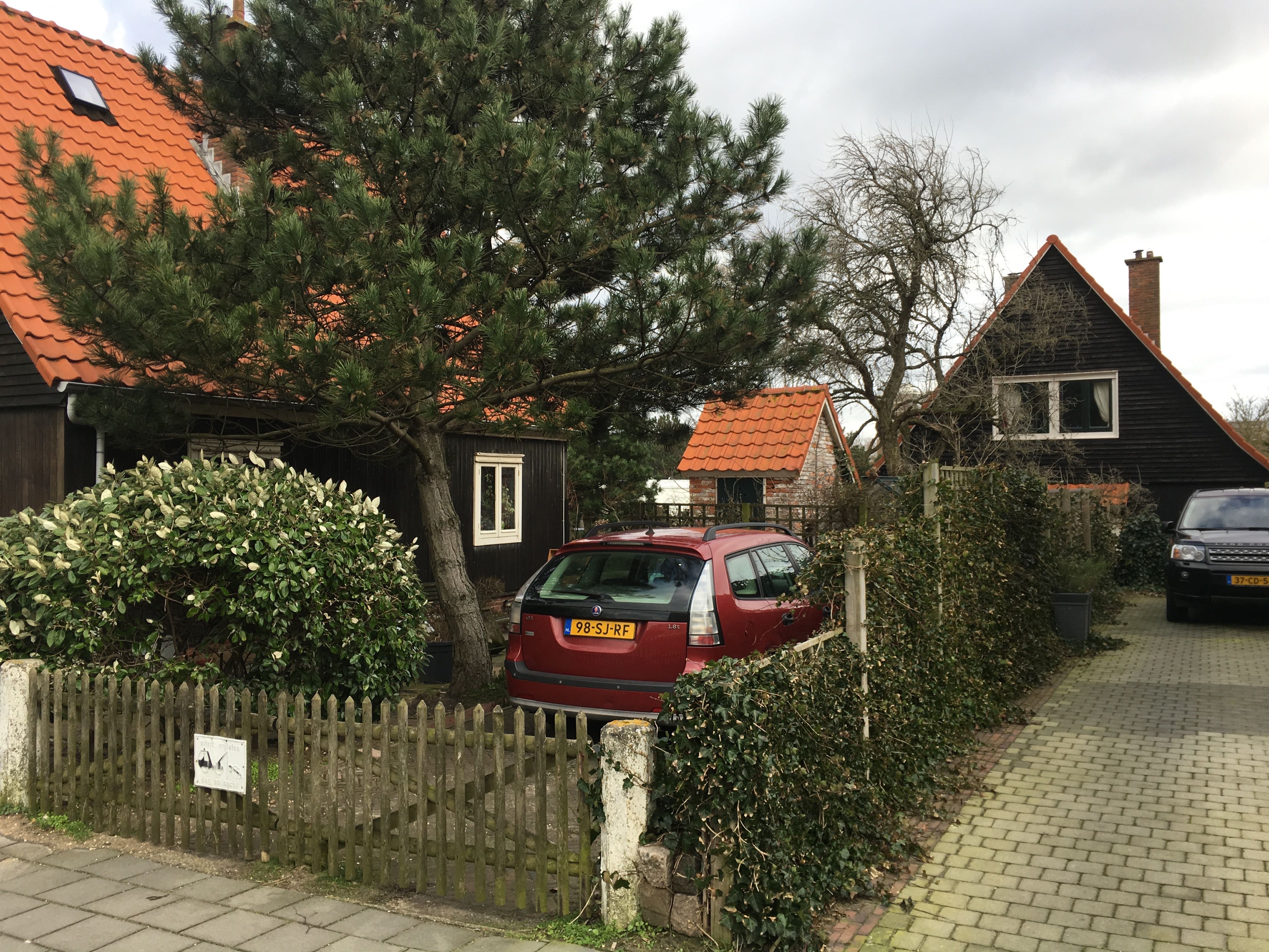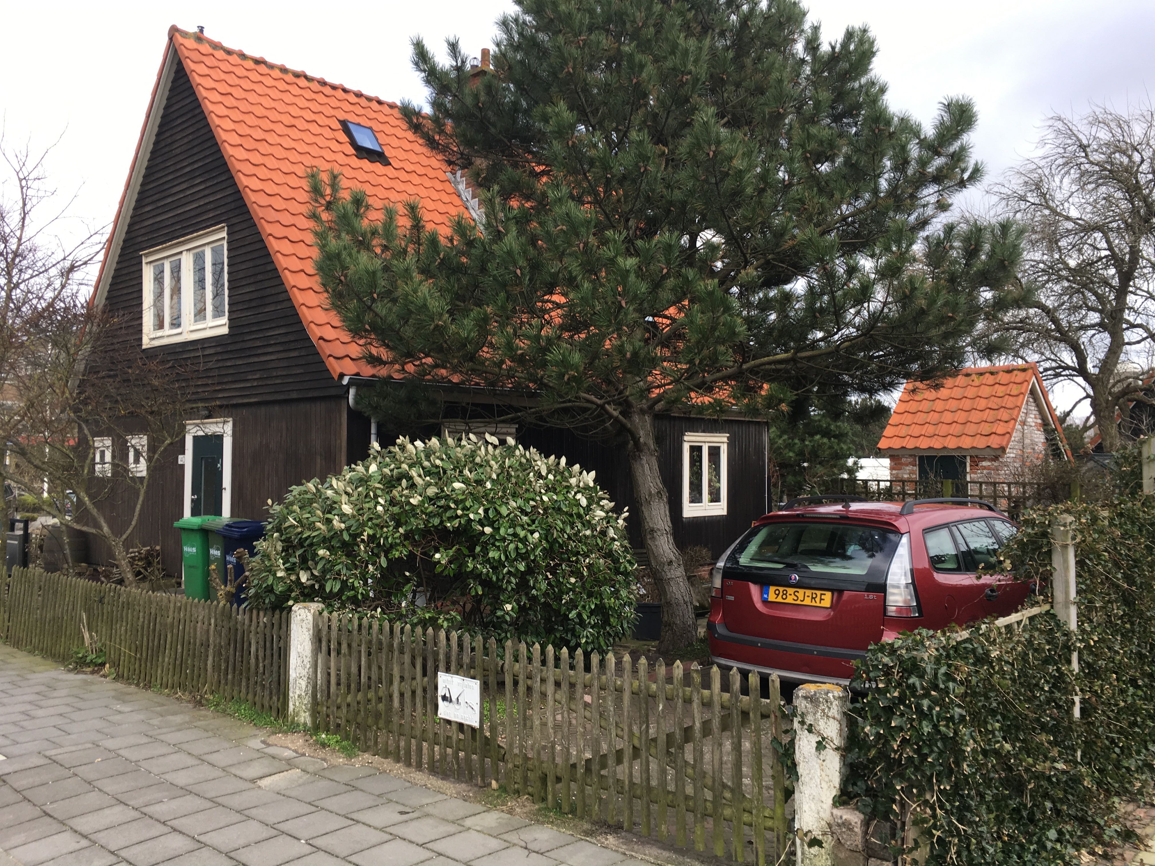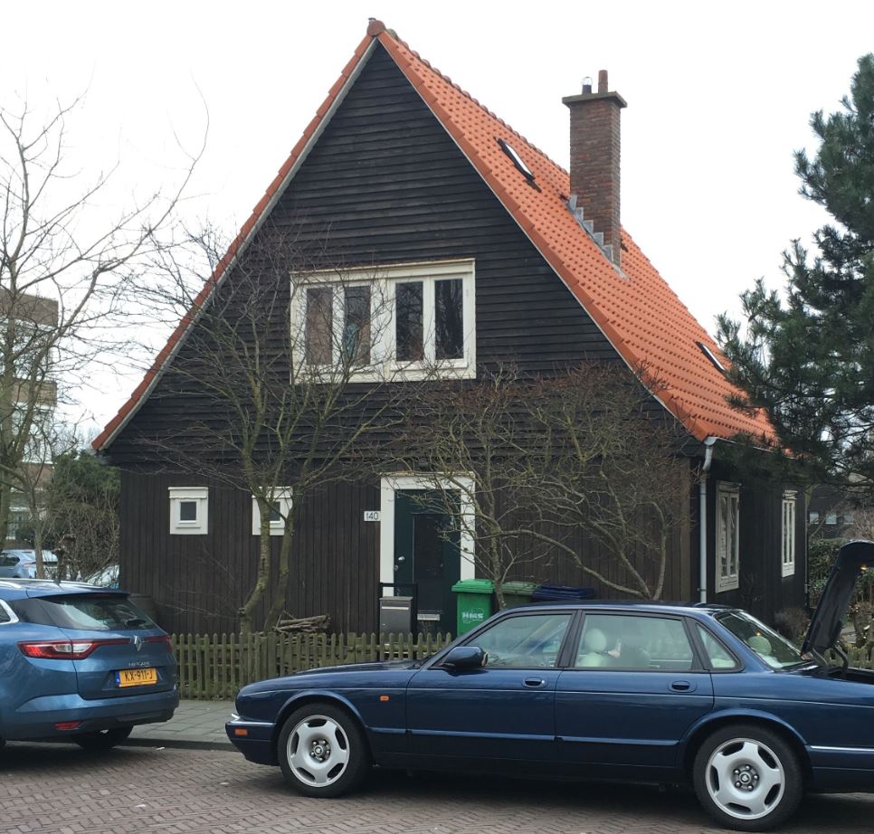 Cluster van drie vrijstaande houten eengezinswoningen, gebouwd in 1948 als montagewoningbouw met houtskeletbouw afkomstig uit Oostenrijk.