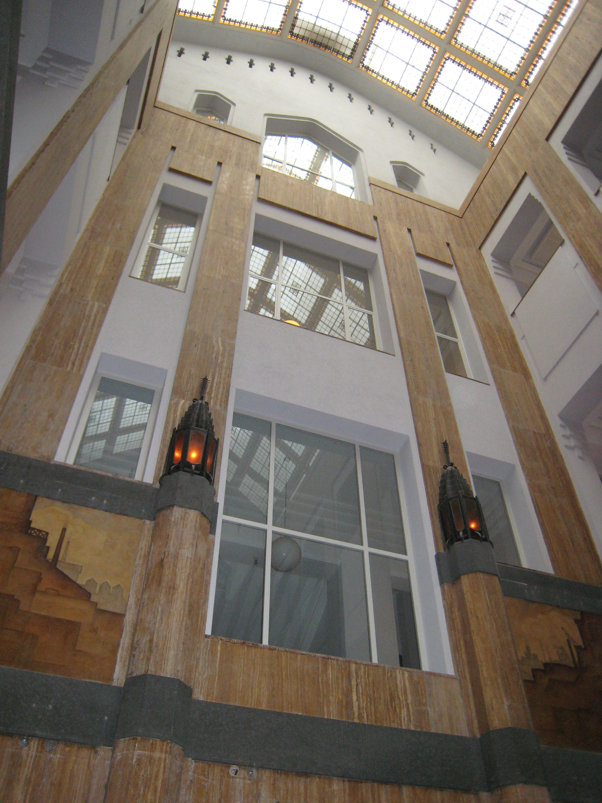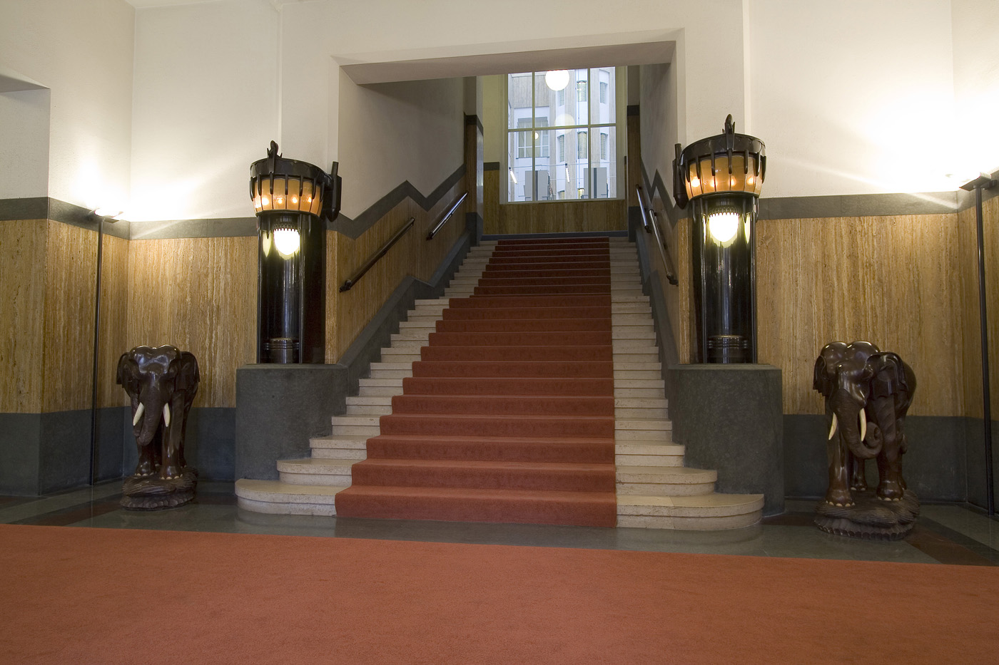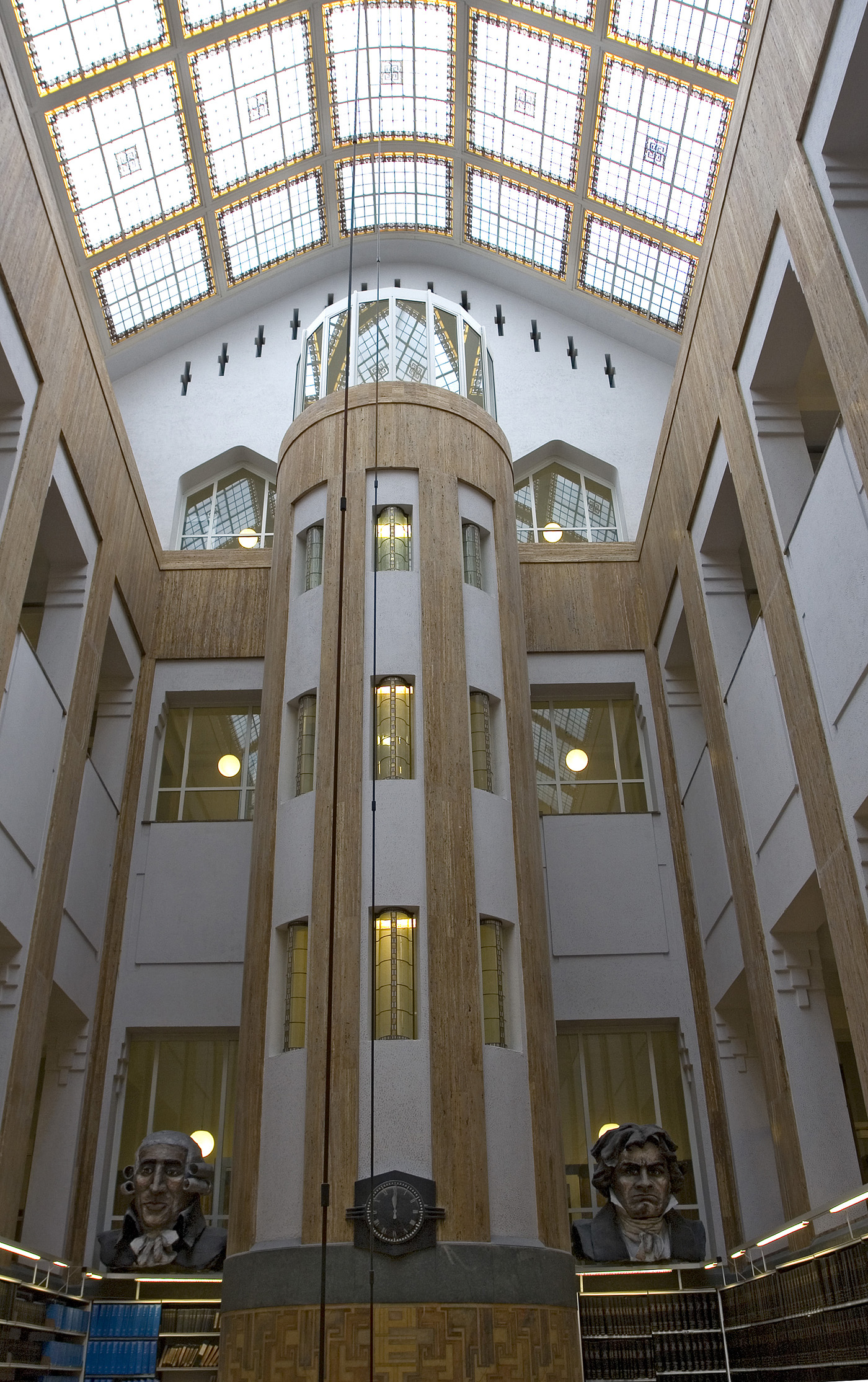 Links van de voorgevel aan de Zuid-Hollandlaan kan men via een entreeruimte en een binnentrap de hal bereiken. In deze hal is onder meer bewaard het trappehuis met Art Deco elementen, een muurschildering van Christiaan de Moor en gebrandschilderd glas over twee verdiepingen van de firma H.J. Winkelman en Van der Bijl uit Amsterdam. Voorts zijn in deze vleugel enkele kamers met betimmering en speciaal ontworpen plaatbronzen convectorbakken oorspronkelijk. De middengang van de hoofdvleugel is vervangen door een vide over de gehele hoogte van het gebouw. In de overige vleugels is het interieur ingrijpend gewijzigd.