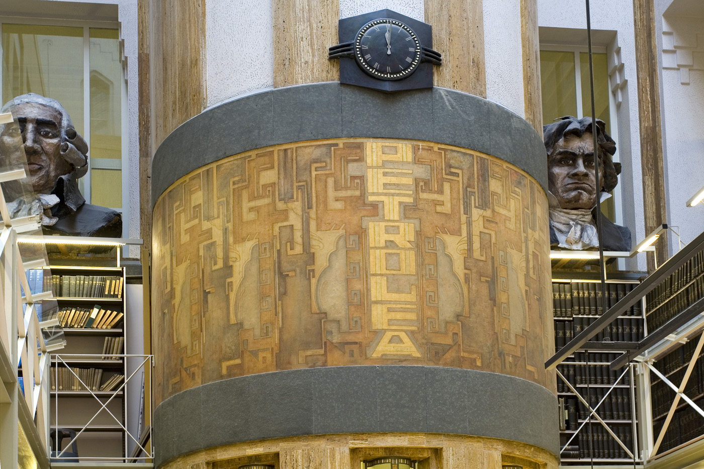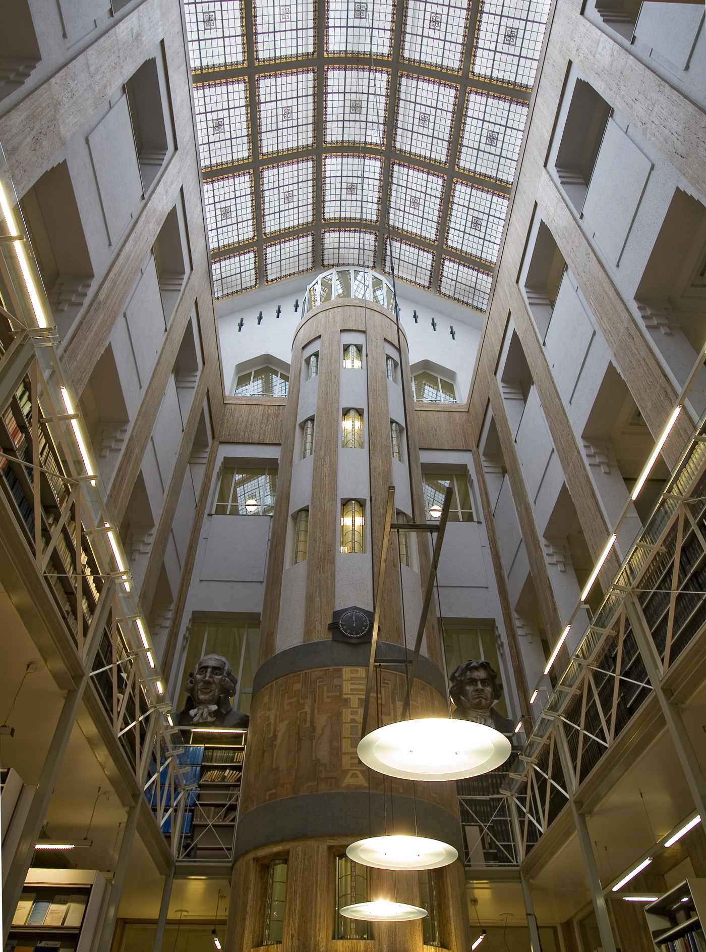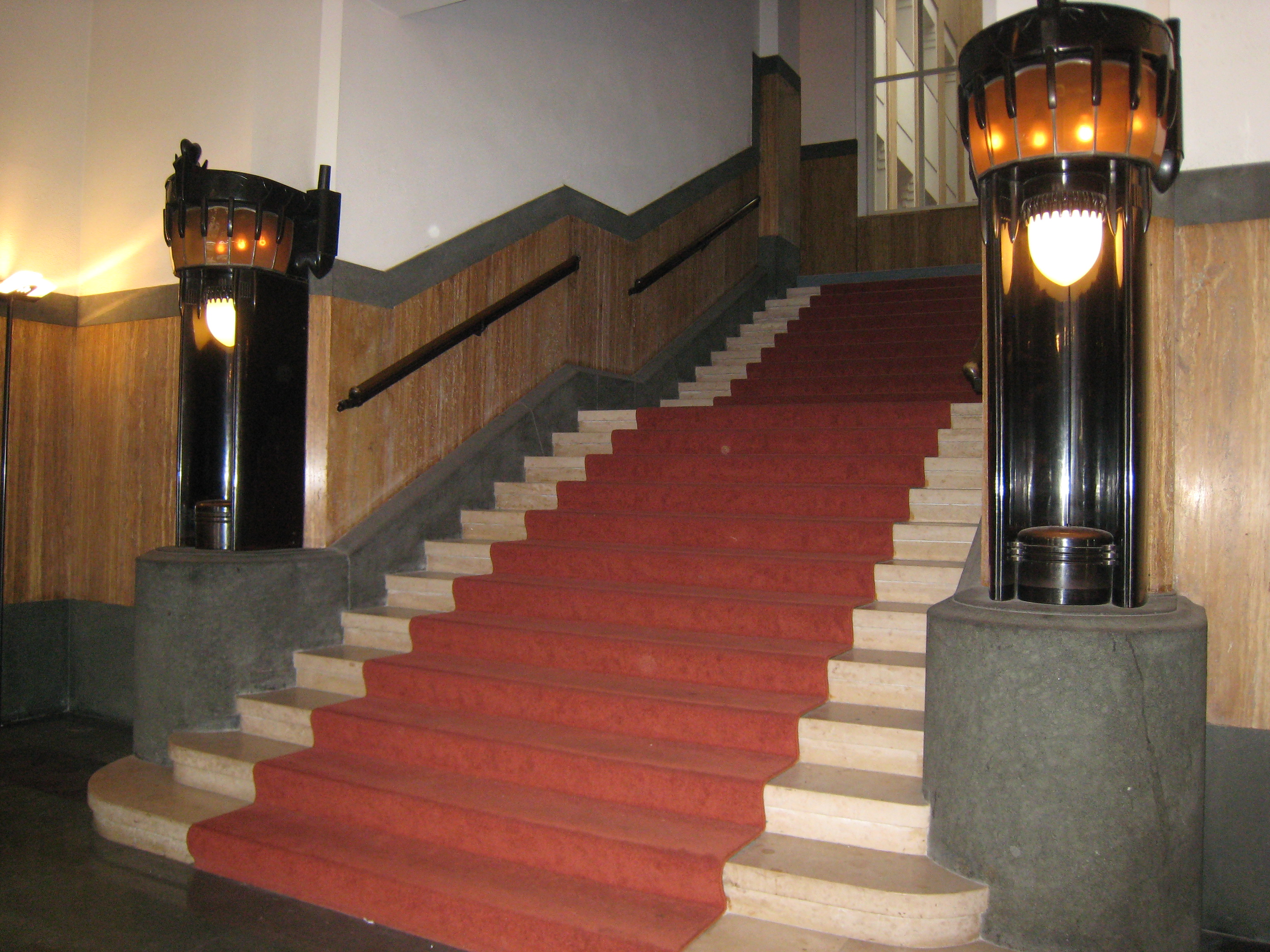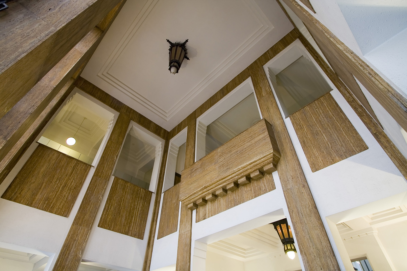Links van de voorgevel aan de Zuid-Hollandlaan kan men via een entreeruimte en een binnentrap de hal bereiken. In deze hal is onder meer bewaard het trappehuis met Art Deco elementen, een muurschildering van Christiaan de Moor en gebrandschilderd glas over twee verdiepingen van de firma H.J. Winkelman en Van der Bijl uit Amsterdam. Voorts zijn in deze vleugel enkele kamers met betimmering en speciaal ontworpen plaatbronzen convectorbakken oorspronkelijk. De middengang van de hoofdvleugel is vervangen door een vide over de gehele hoogte van het gebouw. In de overige vleugels is het interieur ingrijpend gewijzigd.