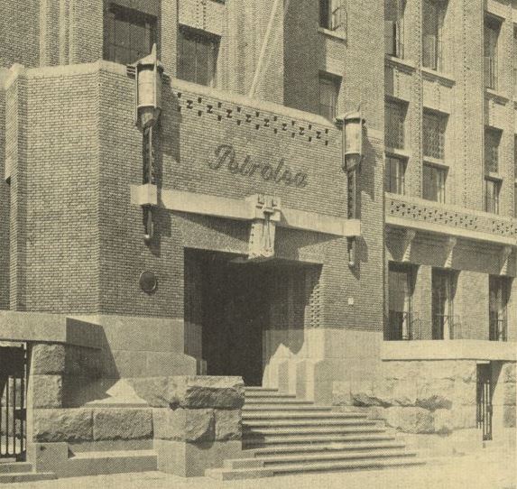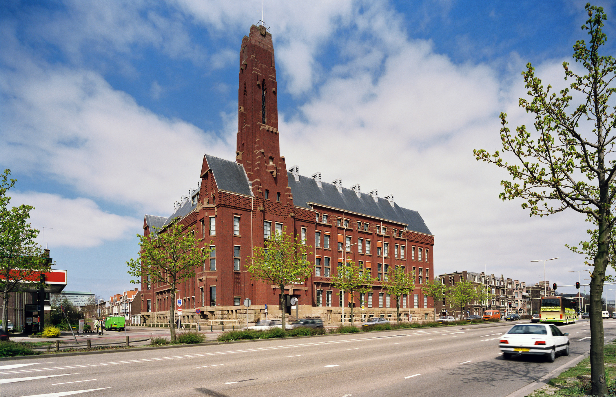 De voorgevel aan de Zuid-Hollandlaan is 17 vensterassen breed. Geheel links in een uitbouw is de hoofdingang met twee in Art Deco vormgegeven buitenlampen. Boven de ingang is een 56 meter hoge toren in opvallend siermetselwerk. De toren is geleed en in de uitvoering van deze geleding zijn onder meer Oosterse invloeden zichtbaar. Het teruggelegen brede middendeel van de voorgevel is 10 vensterassen breed. In het midden van de bovendorpels van de vensters op de begane grond zijn voluutconsoles geplaatst. Deze dragen een gesloten balkon over de gehele breedte van het middendeel. De rechthoekige vensters van de tweede en derde bouwlaag zijn twee aan twee tussen muurdammen geplaatst. In het verlengde van de muurdammen zijn in de nok van het zadeldak schoorstenen geplaatst. Het drie assen tellende, risalerende rechterdeel van de voorgevel heeft op de begane grond een driezijdig gemetselde erkerbouw.