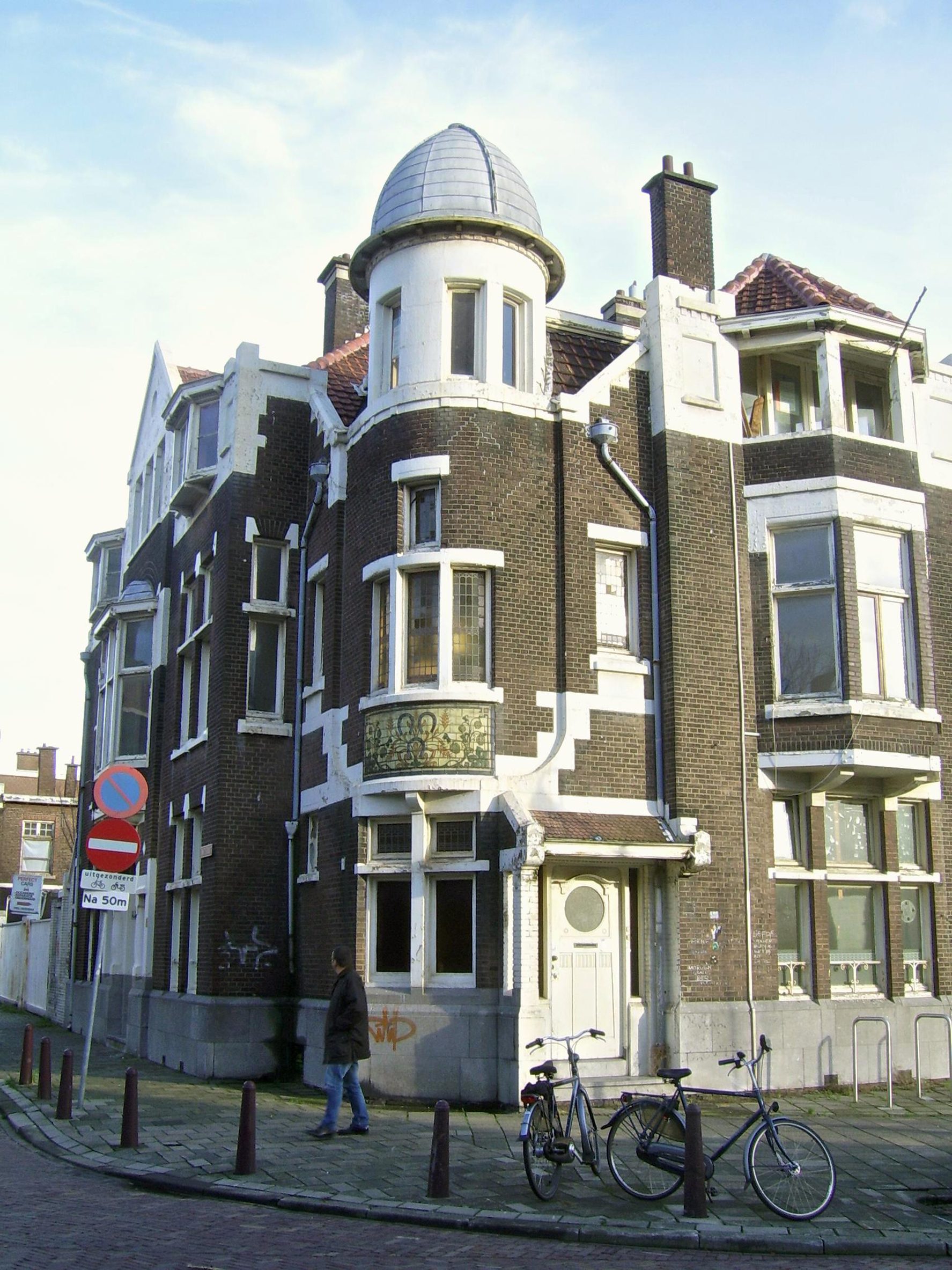 Complex van de voormalige bierbrouwerij 'De Drie Hoefijzers' uit 1912-1913 naar ontwerp van het Haagse architectenbureau K. Meijer & H.E.M. Rademaker bestaande uit een hoofdkantoor, stalgebouw, stalling en een bierdepot.